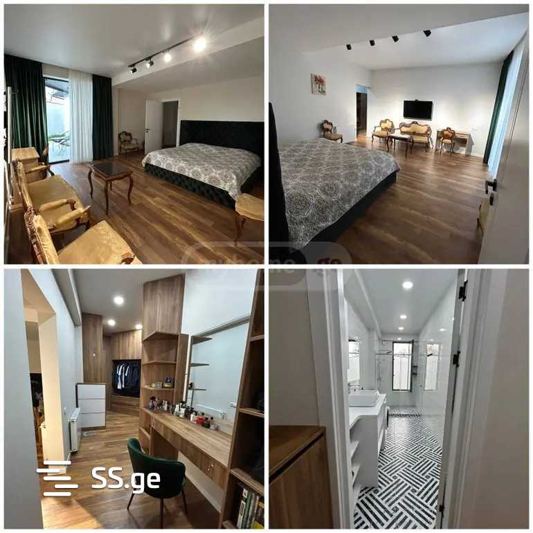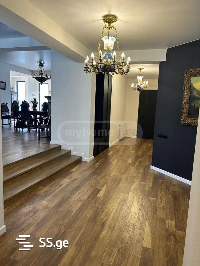 Продается загородный дом в Сагурамо, на земельном участке несельскохозяйственного назначения, новый трехэтажный дом площадью 395 кв. м с 10 комнатами, все комнаты с отдельными выходами во двор. Холл, 5 спален с 5 индивидуальными ванными комнатами (все ванные комнаты с витражными окнами) и собственным выходом во двор, гостевой санузел, прачечная, техническое помещение, гостиная, столовая, кухня + закрытая кухня, крытая терраса и бассейн. Здание имеет теплоизоляцию (утеплитель), алюминиевые витражные окна, собственную артезианскую скважину (100 метров), а также подключено к поселковому водопроводу, центральной канализации, центральному отоплению (теплый пол во влажных помещениях, гостиной, кухне), кабельному телевидению. Телевизор, интернет по Wi-Fi, сигнализация, камеры, постоянное электроснабжение UPC, которое обеспечивает отопление, камеры, интернет и освещение для нескольких комнат при необходимости. Во дворе есть бассейн на 4/8, который имеет подогрев и ночное освещение. Парковочное место на три машины. По желанию мебель в доме остается.