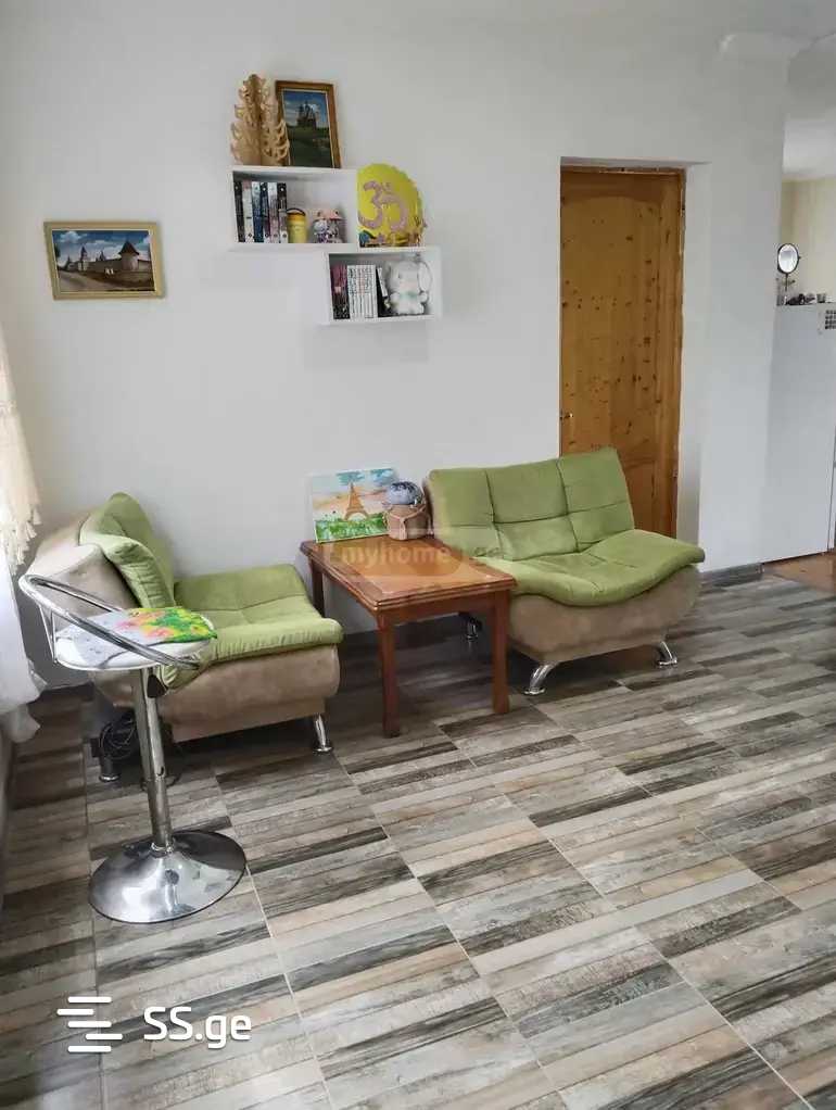 Продается дом в Глдани, 2 этажа, 120 кв.м, участок 500 кв.м, дом построен не на продажу, с капитальным прочным фундаментом, окружен пемзовыми блоками и утеплен пенопластом, в зимнее время дом теплый. Первый этаж жилой, все есть кроме центрального отопления, местоположение хорошее, маршрутка останавливается перед домом, до метро 10 минут, пешком 20 минут. На втором этаже одна комната с штукатуркой, две комнаты сдаются в аренду, есть две ванные комнаты, оставлен проем для лестницы, лестница не сделана.