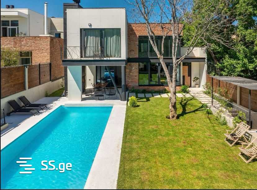 В доме есть закрытый гараж на 2 машины, открытый бассейн с подогревом и будет закончена сауна.