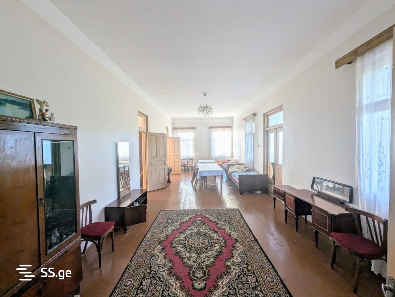 Двухэтажный дом общей площадью 379 квадратных метров расположен на просторном участке площадью 3 384 квадратных метра. В доме проведены все необходимые коммуникации: газ, вода, электричество. На территории участка протекает горная река, что добавляет особенную атмосферу месту. С дома открывается панорамный вид на море и горы. Крыша в отличном состоянии, остальная часть здания требует капитального ремонта.