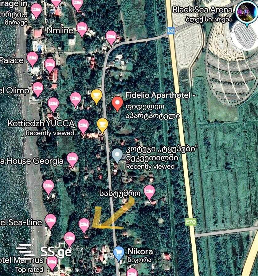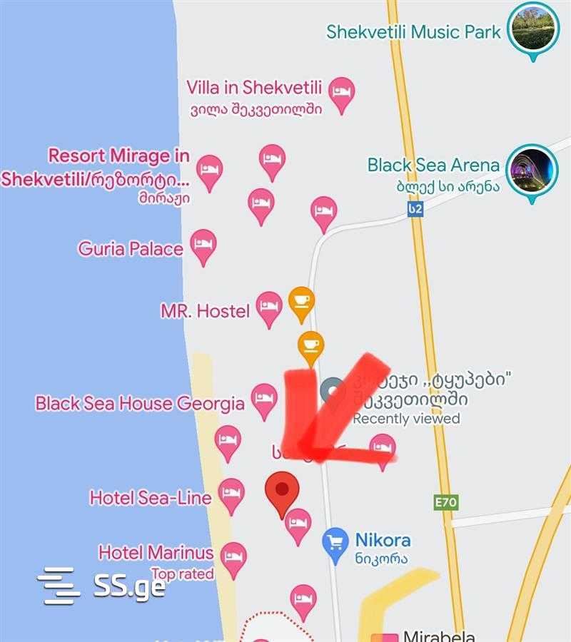 Продается 500 кв.м земли в Шекветили, перед Черным морем, примерно в 200 метрах от моря. Строительство разрешено. Место идеально подходит для строительства отеля, частного дома или коттеджа.