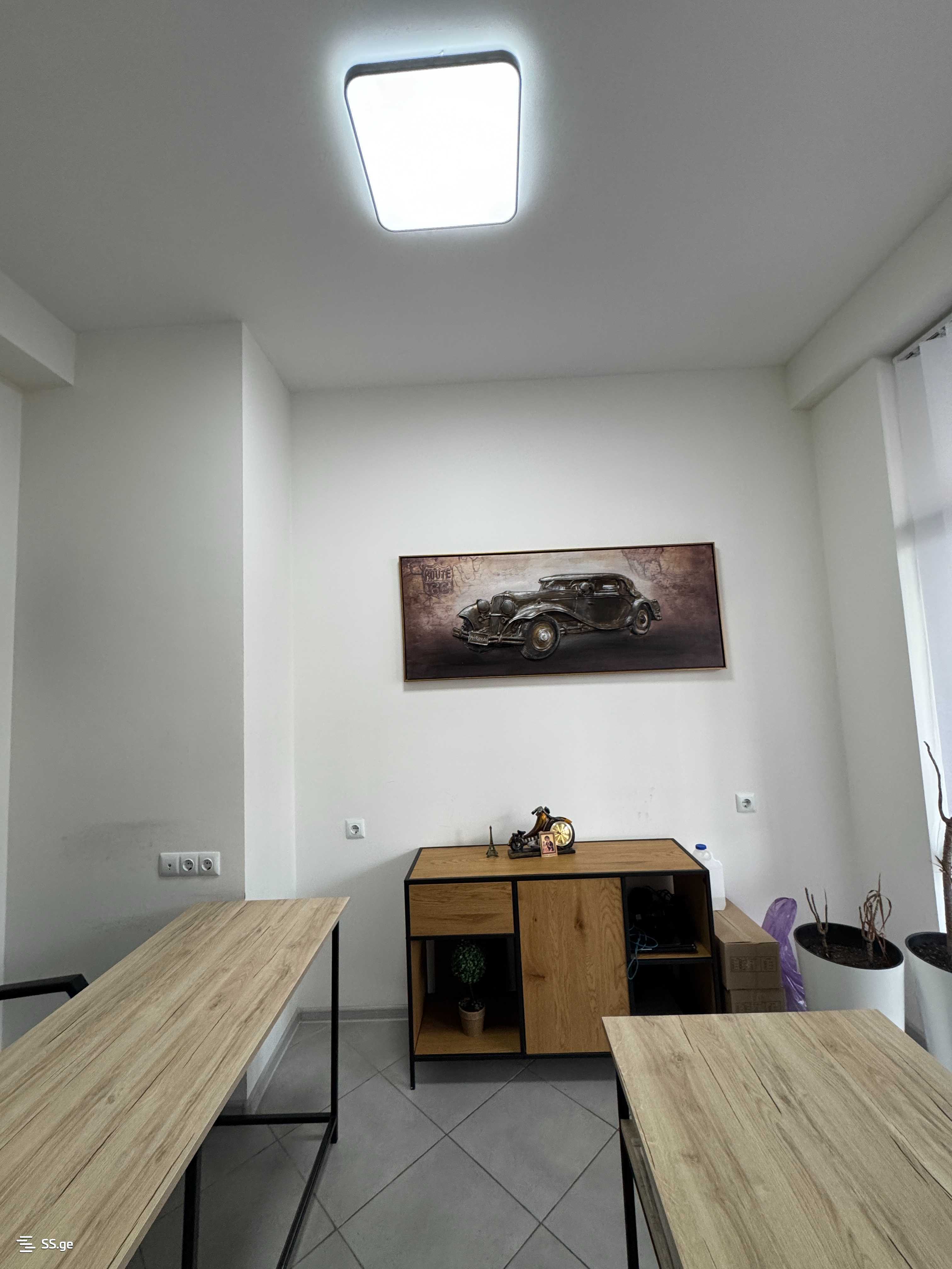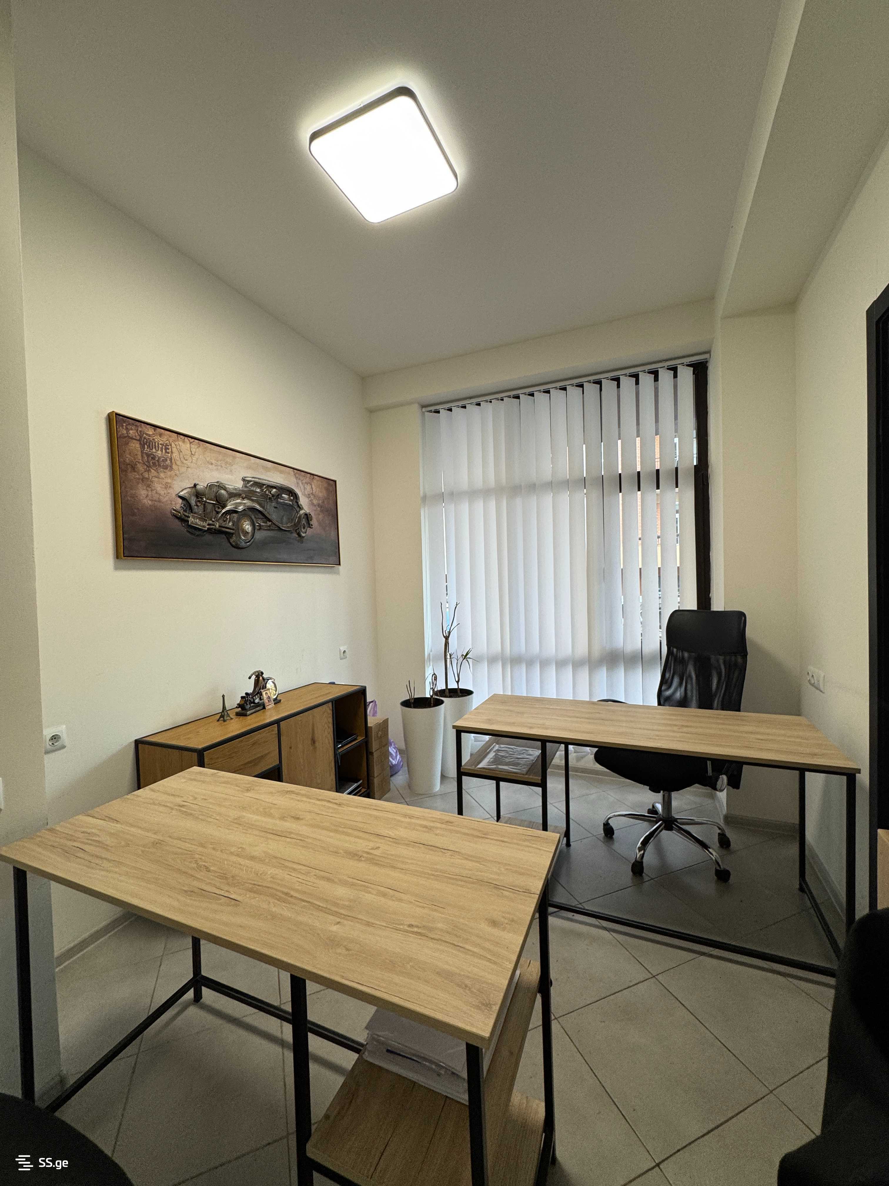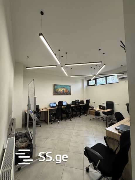 Продается витражное офисное коммерческое помещение в Сабуртало, по адресу улица Сайрме 5, на перекрестке улиц Гамрекели и Сайрме. В помещении есть приемная, две независимые комнаты, а также одна большая комната, кухня и санузел. Установлены кондиционеры и центральное отопление.