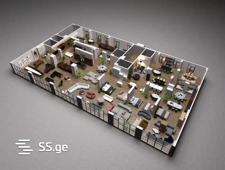 Этаж 3 и этаж 4, а также коммерческое помещение на втором этаже площадью 722 кв. м и на первом этаже площадью 564 кв. м. Парковочные места, зоны отдыха, большая терраса, балконы, а также возможна покупка парковочных и складских мест.