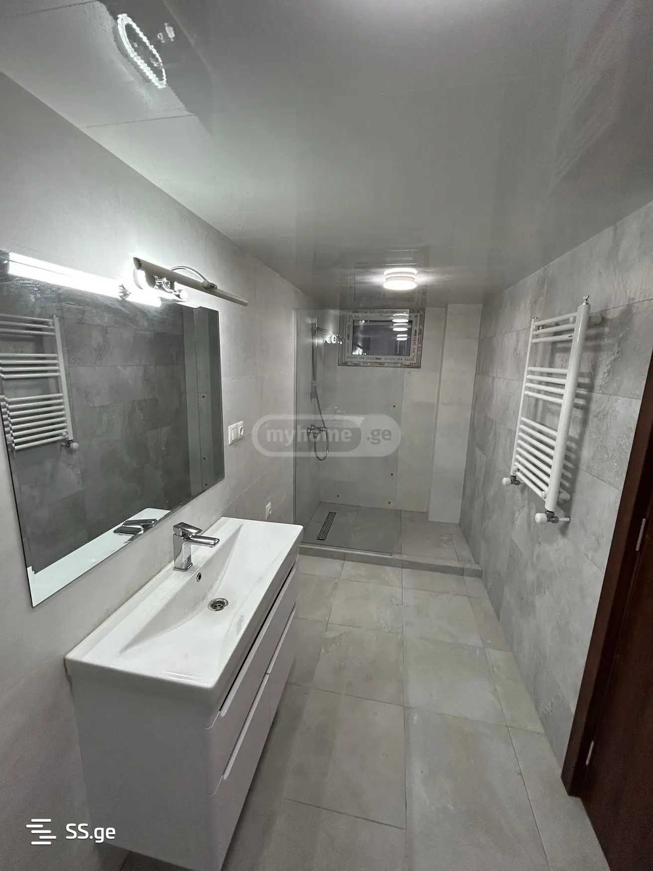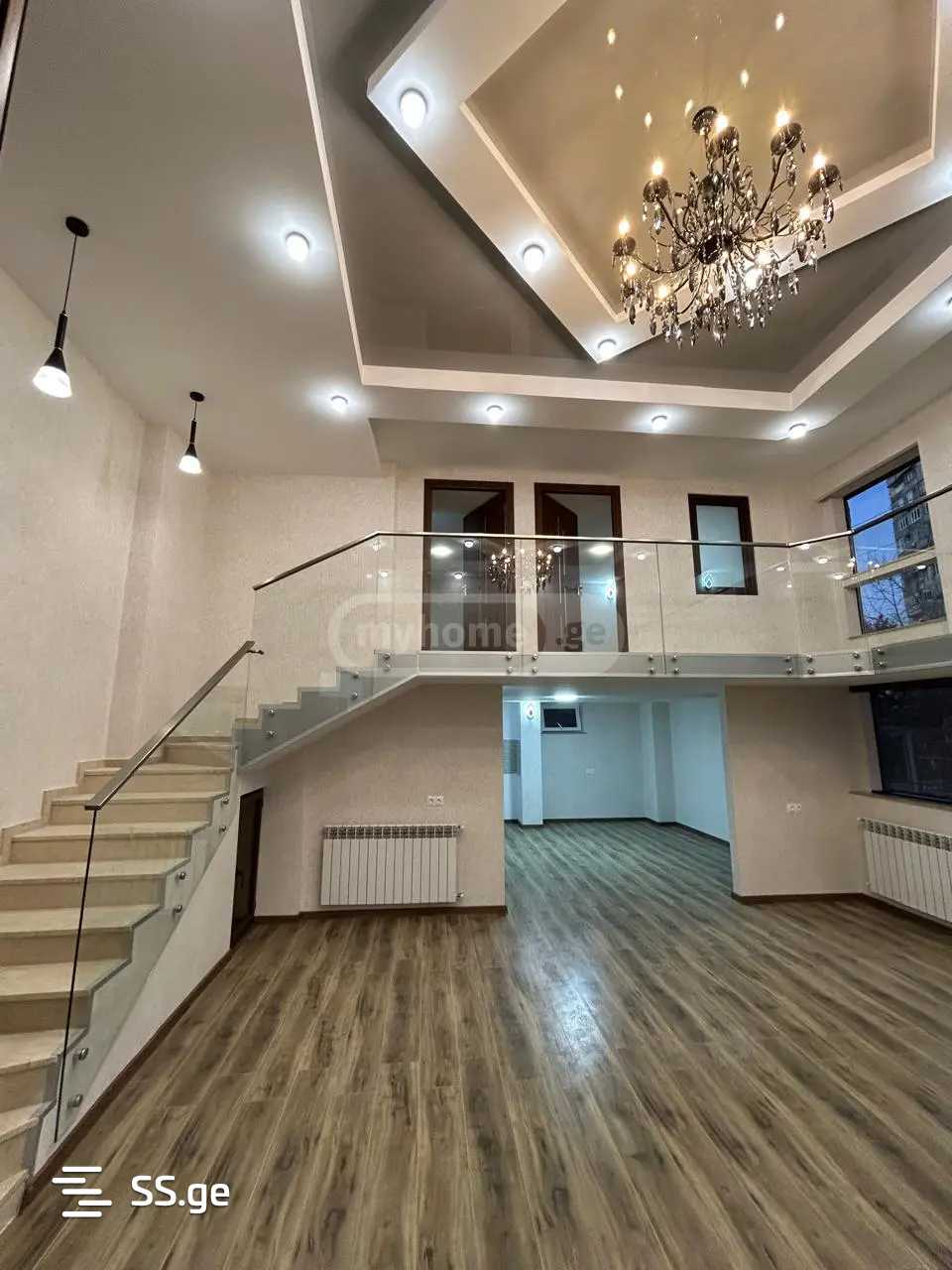 Площадь без стен и колонн составляет 120 квадратных метров. Все коммуникации в квартире подключены (оформлены на абонента), установлен котел мощностью 28 кВт и алюминиевые радиаторы. У квартиры есть запасной вход со двора. Помещение можно использовать как офис, квартиру или для других целей.