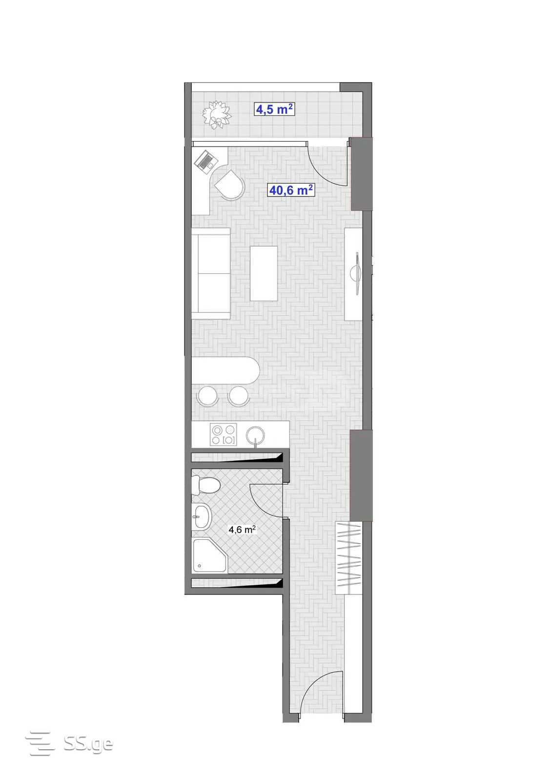 45.1 m²Комната