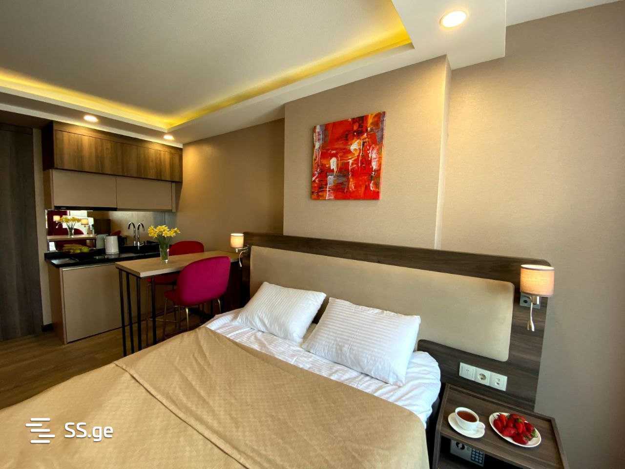 Продаётся студия с дизайнерским ремонтом, оборудованная мебелью и техникой в элитном жилом комплексе Sunrise на первой линии с видом на море. Комплекс расположен с динамично развивающемся районе Батуми в непосредственной близости от просторного парка Качинских в пешей доступности торговые центры , рестораны, кафе , аптеки . До пляжа и благоустроенной набережной 70 метров. Этот комплекс введен в эксплуатацию и устойчиво пользуется спросом у туристов. Отличная инвестиция.