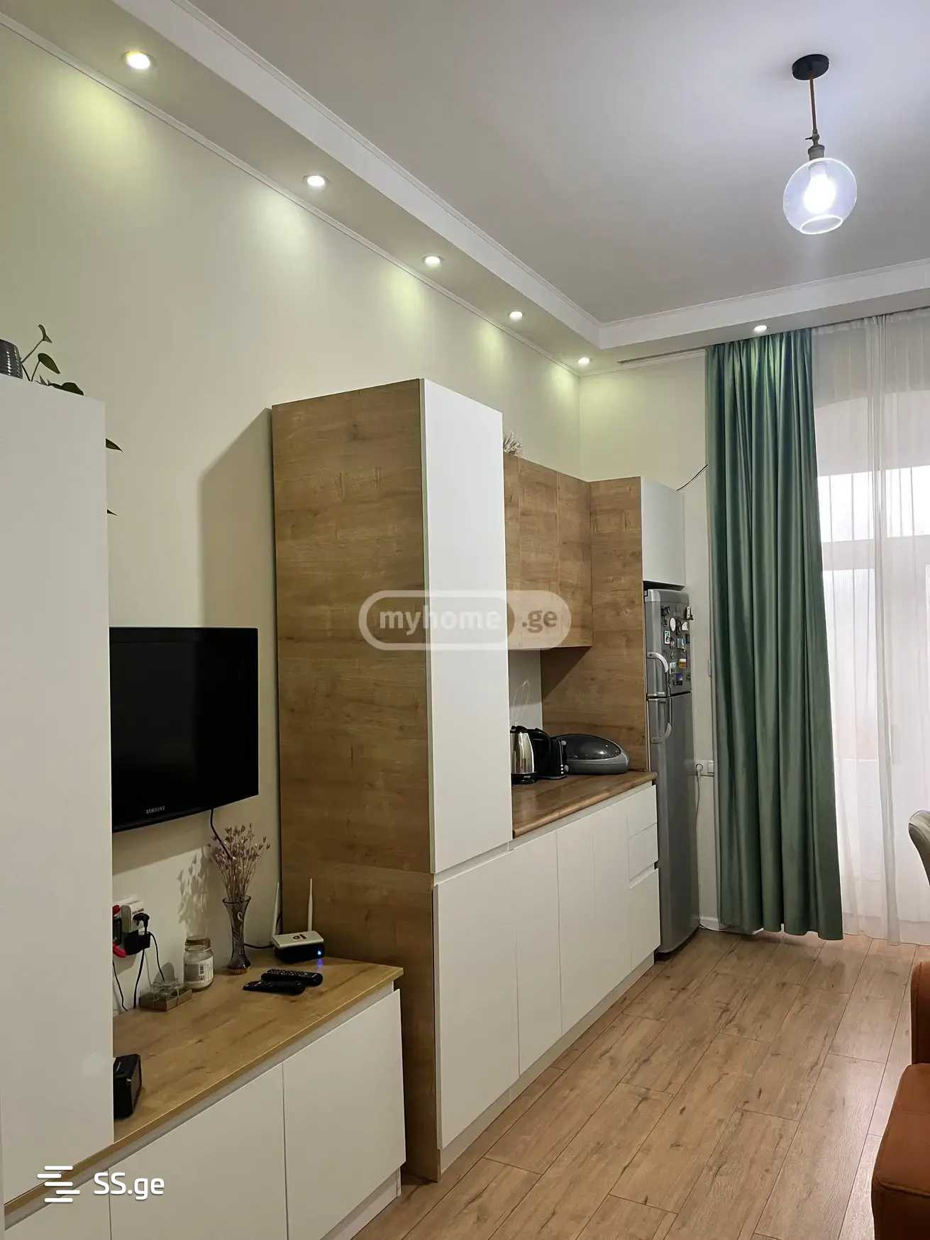 Квартира находится в итальянском дворе, на втором этаже, недалеко от станции метро Авлабар - всего 5 минут. Квартира была капитально отремонтирована 3 года назад. В общем коридоре расположено индивидуальное кухонное пространство.