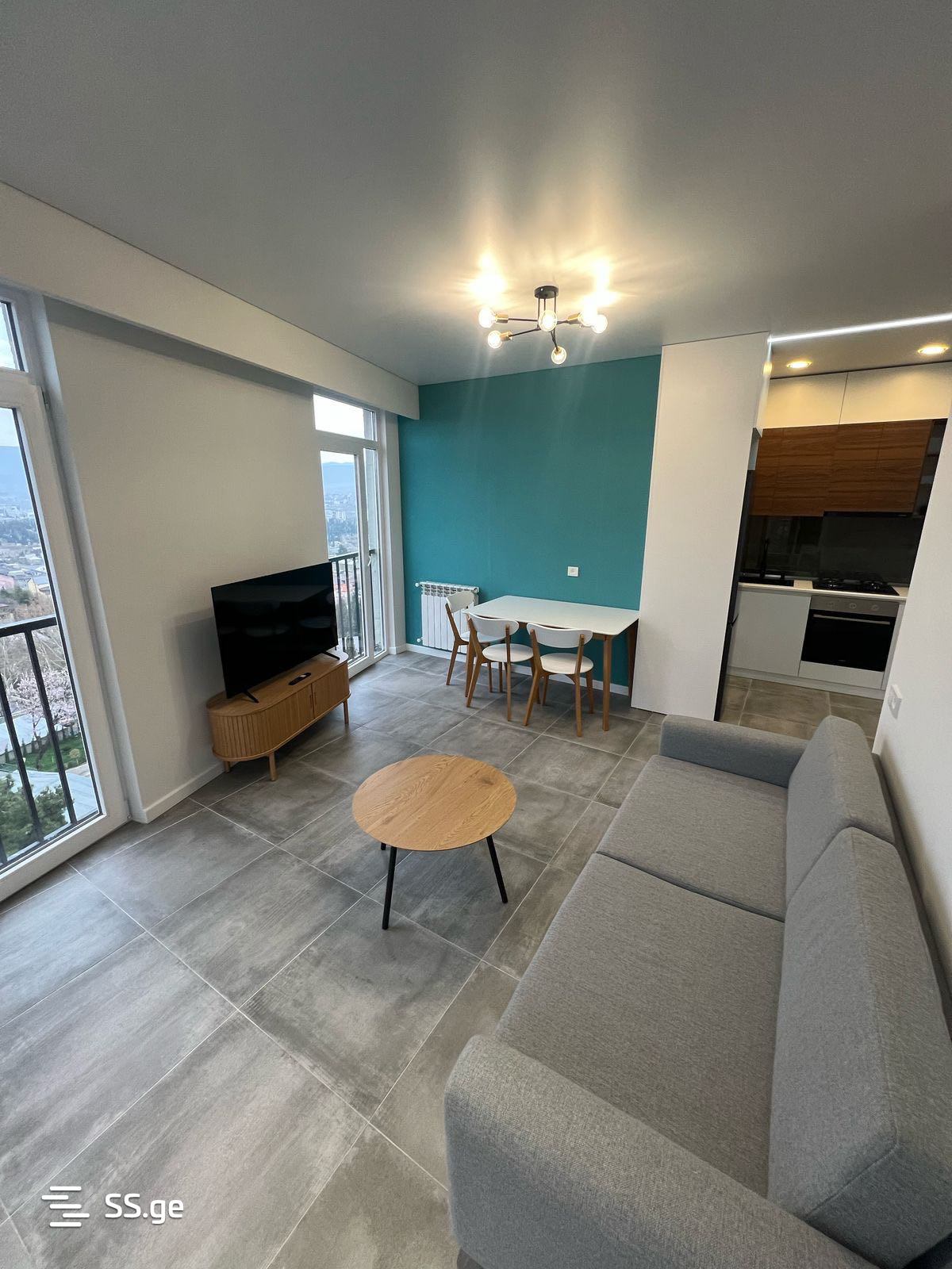 Продается квартира площадью 50,3 кв.м, 2 комнаты, студия, новая, отремонтированная, (необжитая) на улице В. Годзиашвили в Вакхлиджвари, осталось минимальное количество деталей до полного ремонта, один балкон, санузел, великолепные панорамные виды на город, отремонтирована качественными отделочными материалами, полностью меблирована, со всей необходимой мебелью и техникой, идеальная локация как для проживания, так и для аренды, уютная, светлая, солнечная квартира. Цена 80 000 $
