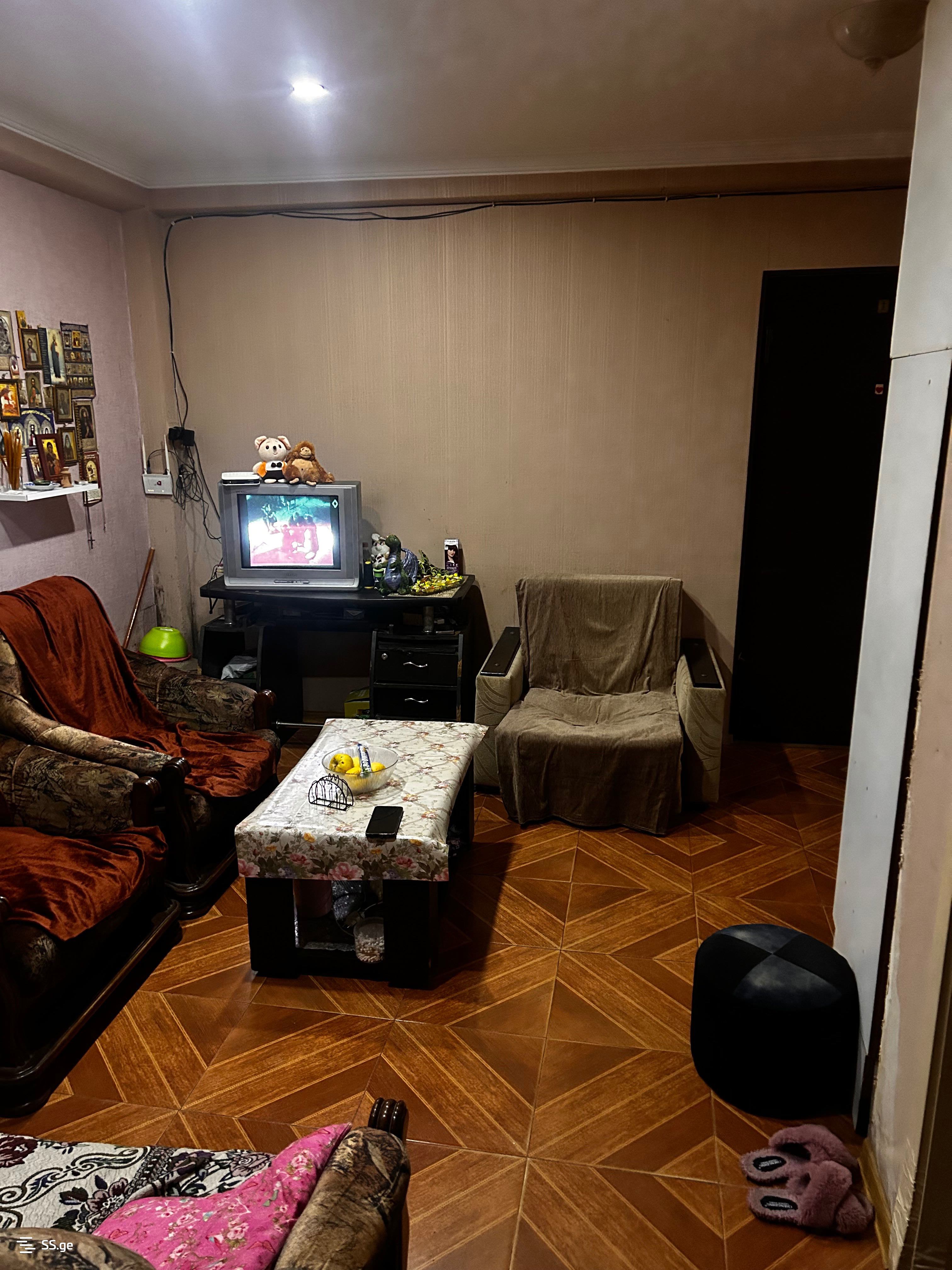 Продается квартира в Земо Самгори, в 200 метрах от метро. В здании 17 этажей. Проект Тухарели Кавлашвили. В квартире площадью 45 квадратных метров также есть открытая площадка, которую можно использовать как дополнительный балкон. В настоящее время квартира сдается за 700 лари.