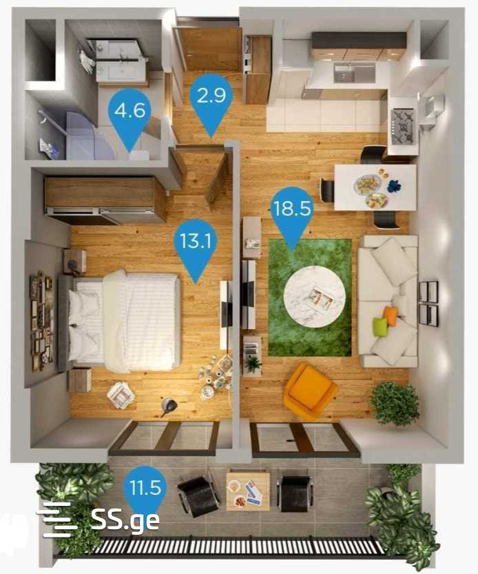 Продается уютная, светлая 2-комнатная квартира с прекрасным видом на город и реку. Отличное расположение для жизни и инвестиций. Во дворе есть детская площадка, закрытый двор. В квартире индивидуальное газовое отопление. 5 минут ходьбы от станции метро Исани одна станция метро до Центральной части Тбилиси. Развитая инфраструктура, в шаговой доступности салоны красоты, магазины, фитнес-центры, ТЦ Carrefour и McDonald's. Исторический центр Тбилиси находится в 10 минутах езды на автомобиле, 20 минут на автомобиле до аэропорта Тбилиси. Дом построен можно приступать к ремонту.
