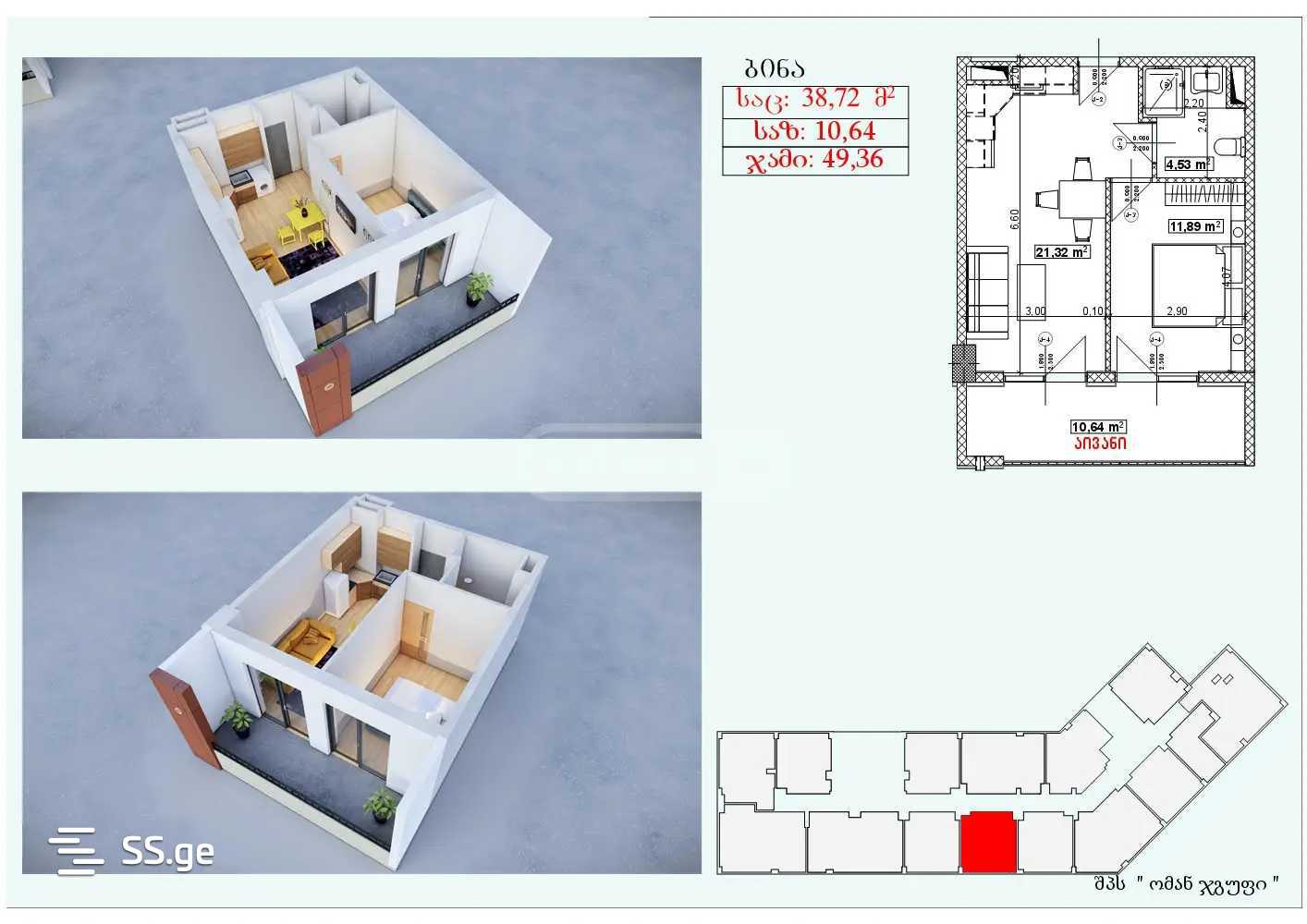 49.32 m²Комната