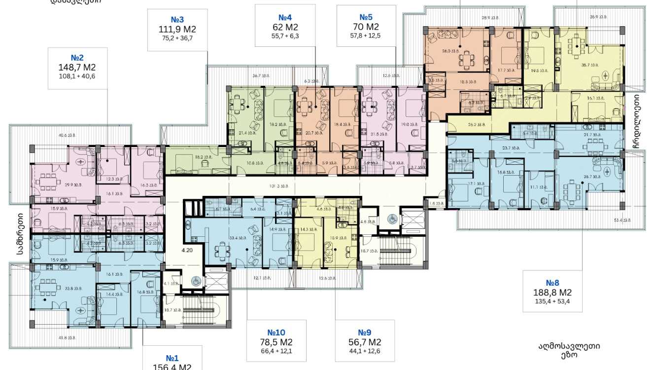 Гранде Крцаниси состоит из четырех 9-10 этажных зданий, построенных по монолитно-каркасной технологии. Фасады оформлены в спокойной цветовой гамме с деревянными элементами и панорамными окнами. Используются высококачественные теплоизоляционные материалы и теплосберегающие стеклопакеты. На крышах обустроены террасы с панорамными видами. Территория площадью 10 тысяч кв.м включает зоны отдыха, детскую площадку, фитнес-зал, СПА-центр, открытые и крытые бассейны. Также на территории будут аптека, банк и супермаркет. Круглосуточная охрана и 3-уровневый подземный паркинг обеспечивают безопасность и удобство. В лобби работает консьерж. Гранде Крцаниси предлагает 98 квартир различных планировок: 1-, 2-, 3- и 4-комнатные. Площадь варьируется от 59,6 до 672,8 кв.м, с высотой потолков 3 метра. Кол-во квартир в продаже – 80 Кол-во квартир – 160.