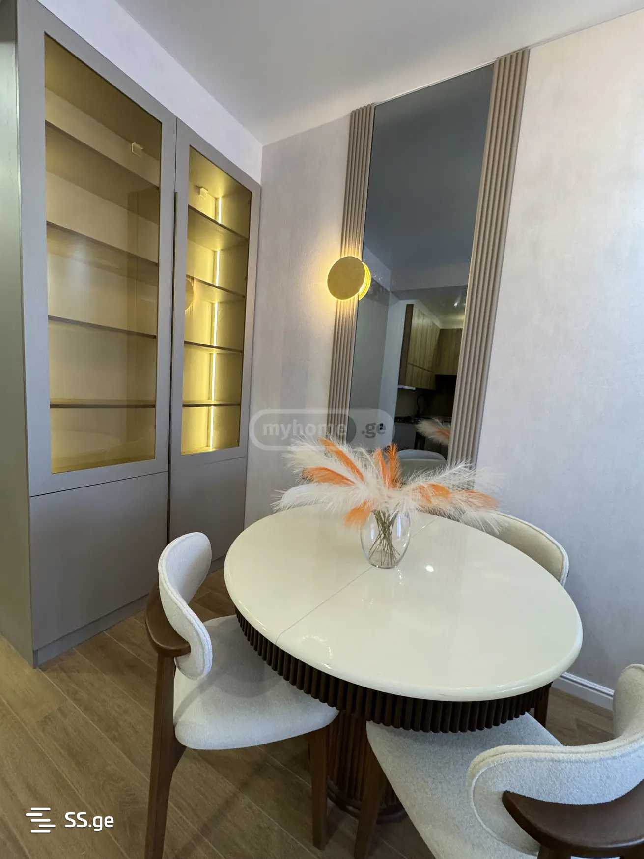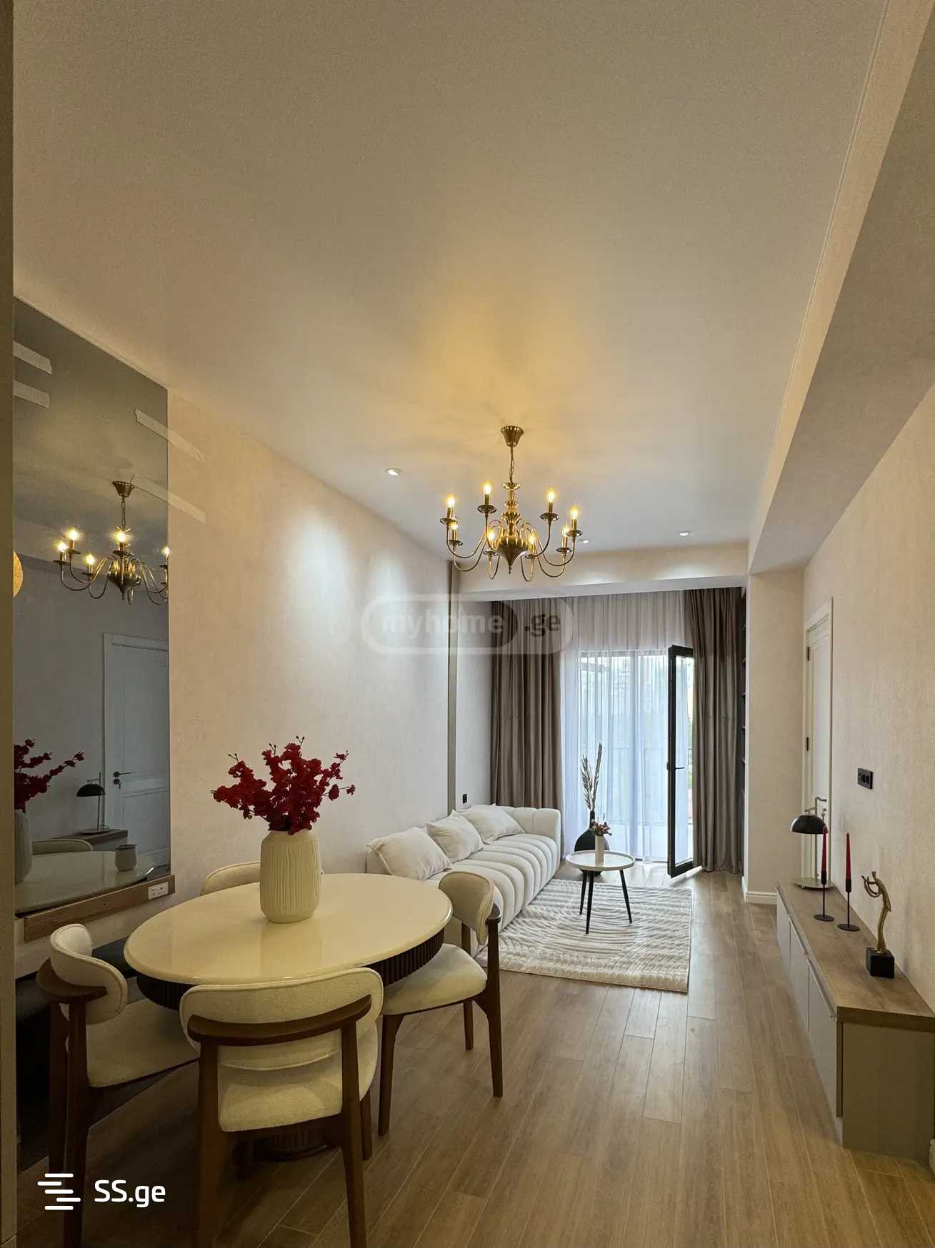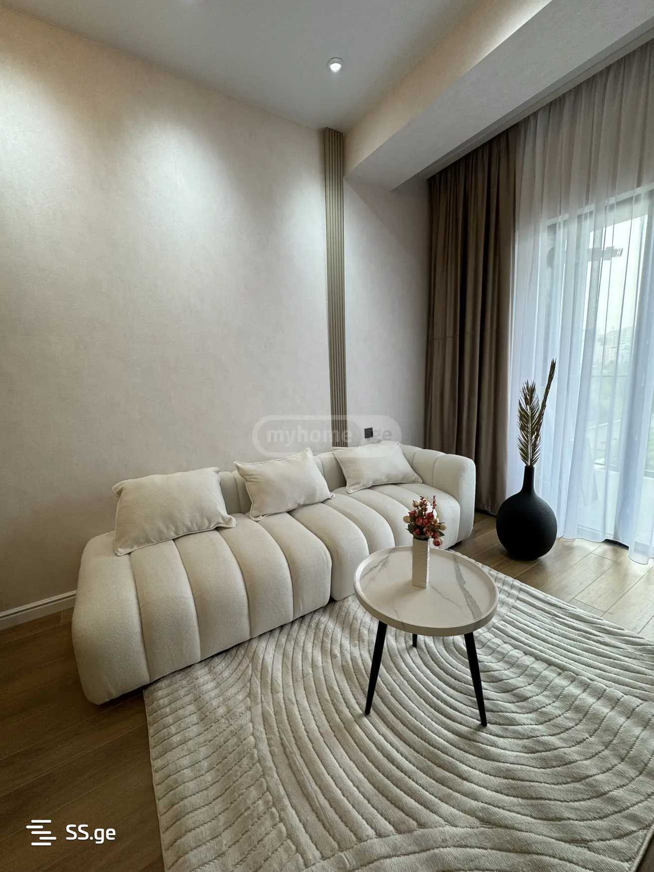 Однокомнатная отремонтированная квартира площадью 60 кв.м на улице Миндели в Сабуртало в новом здании на 10 этаже из 12 с прекрасным видом на город. 3 минуты пешком от метро Государственного университета. Квартира меблирована высококачественной мебелью и техникой и готова к заселению.