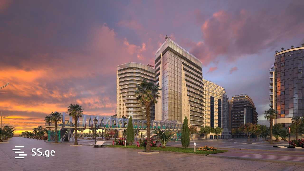 Проект представляет собой три связанных между собой блока с единым подиумом и стильным архитектурным решением. Строительство началось в мае 2022 года, завершение ожидается к декабрю 2025 года. Квартира будет сдана в состоянии «под ключ» и расположена всего в 180 метрах от моря.