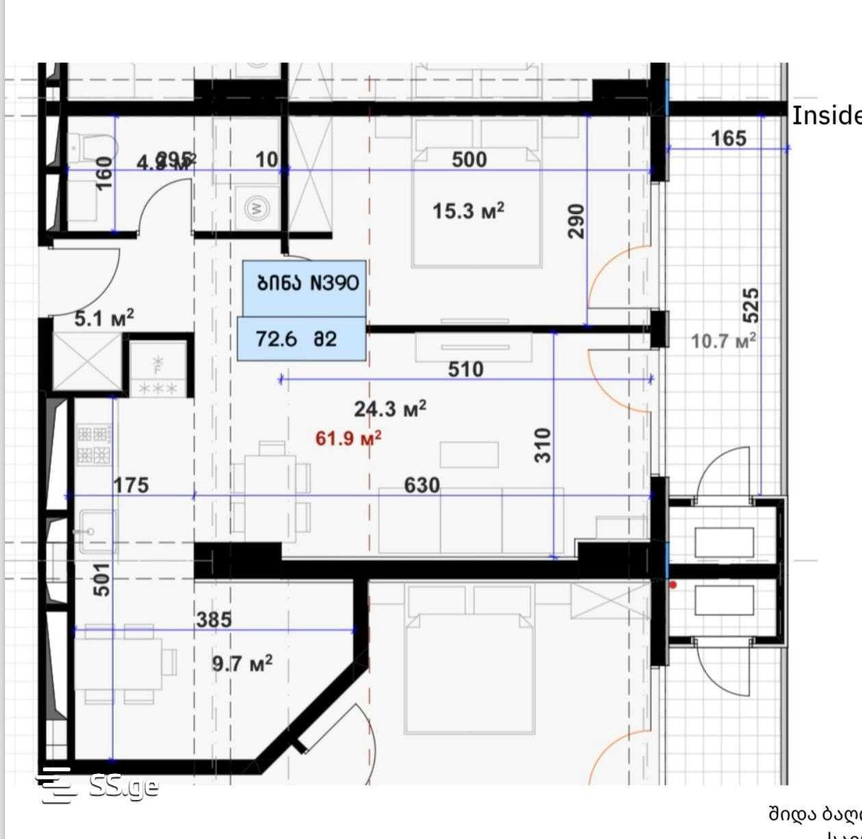 72.6 m²Комната