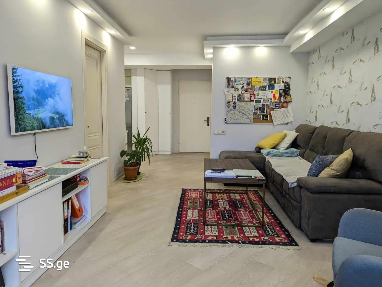Newly renovated apartment for sale with central heating and air conditioning in a newly built building. repairs made with the highest quality materials. Bosch fridge and dishwasher (16person), electric luxury builtin oven, cupboards and table remain in the kitchen. washing machine with dryer remains in the bathroom. in the bedroom and living room builtin wardrobes and bed. there is a builtin storage closet on the balcony. In short, almost everything you see in the pictures is built in and remains. apartment is located 7 minutes by foot from the metro of Deepagheli.Продается недавно отремонтированная квартира с центральным отоплением и кондиционером в новом здании. Ремонт был выполнен с использованием материалов высочайшего качества. Кухня остается оборудованной холодильником и посудомоечной машиной Bosch (на 16 мест), электрической встроенной духовкой Lux, шкафами и столом. В ванной комнате имеется стиральная машина с сушилкой. В спальне и гостиной встроенные шкафы и кровать. На балконе имеется встроенный шкаф для хранения вещей. Короче говоря, почти все, что вы видите на фотографиях, встроено и остается. Квартира расположена в 7 минутах ходьбы от станции метро «Грмагели».