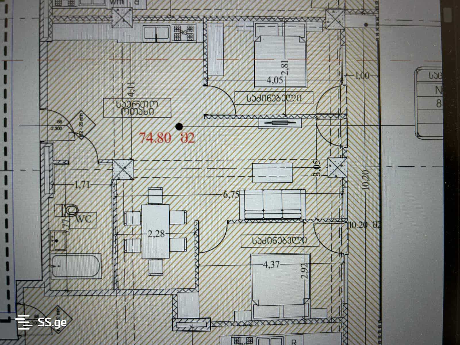85 m²Комната