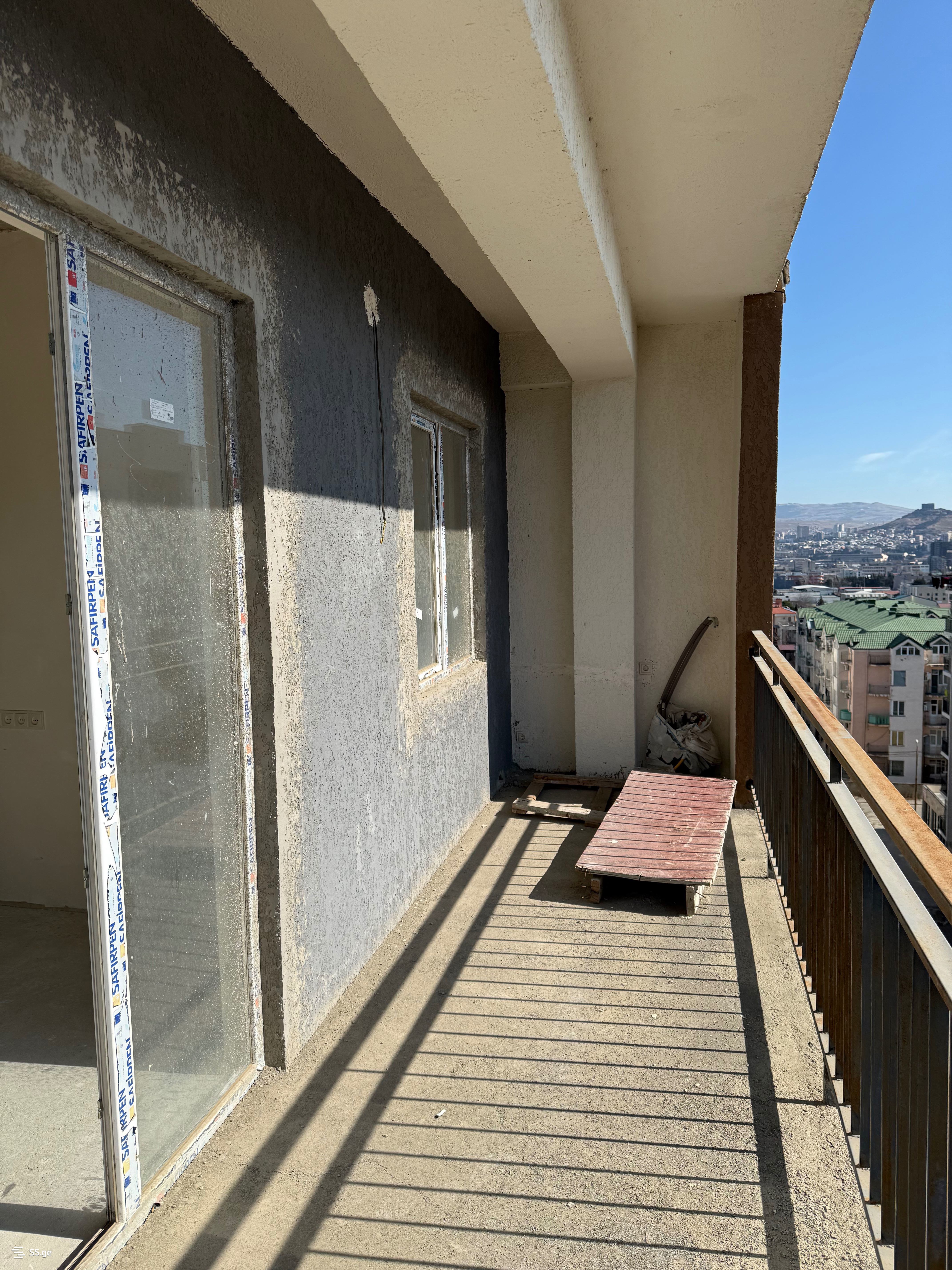 В Дигоми светлая 3-комнатная квартира в тихом и спокойном районе в состоянии зеленого каркаса.