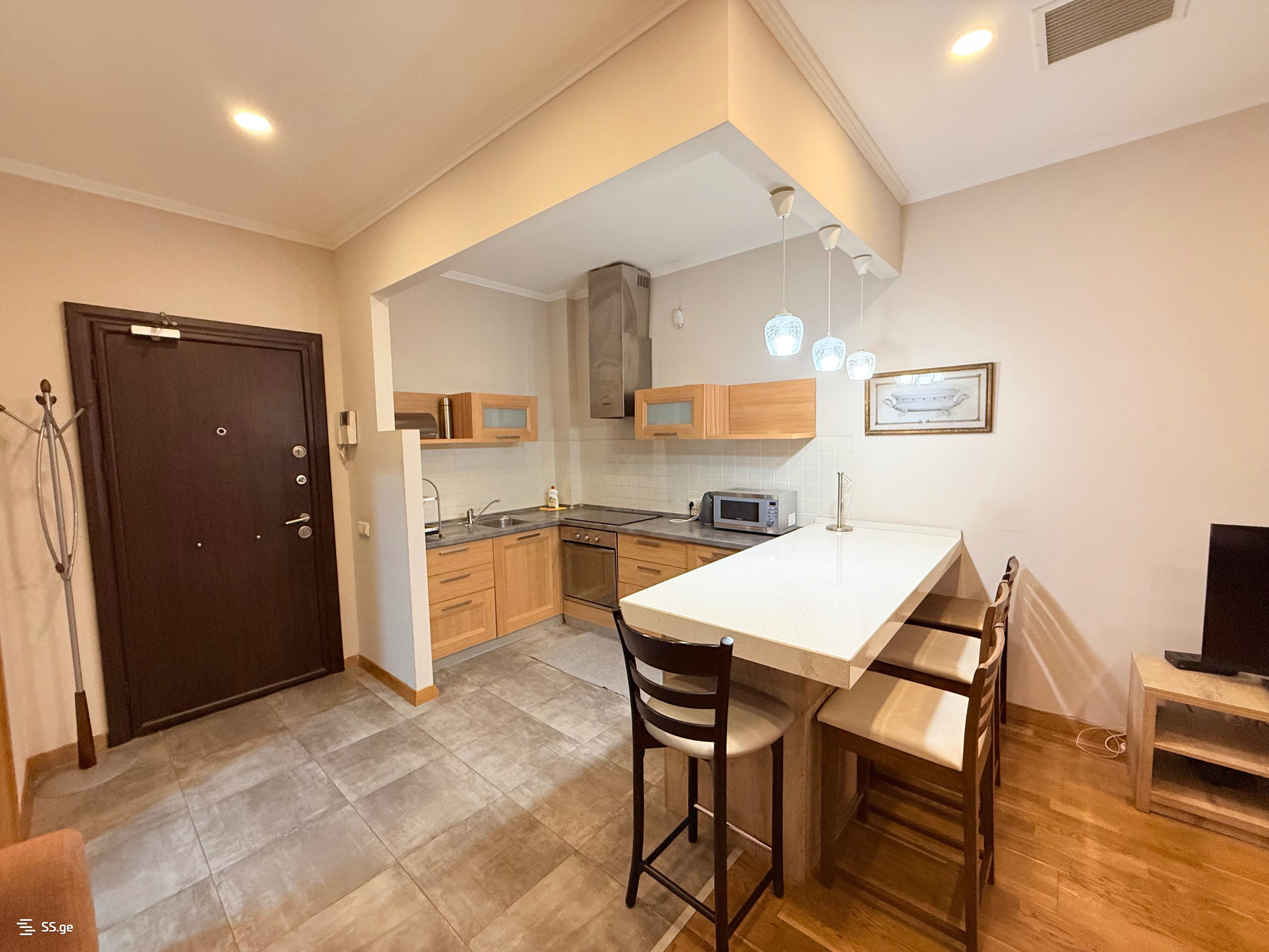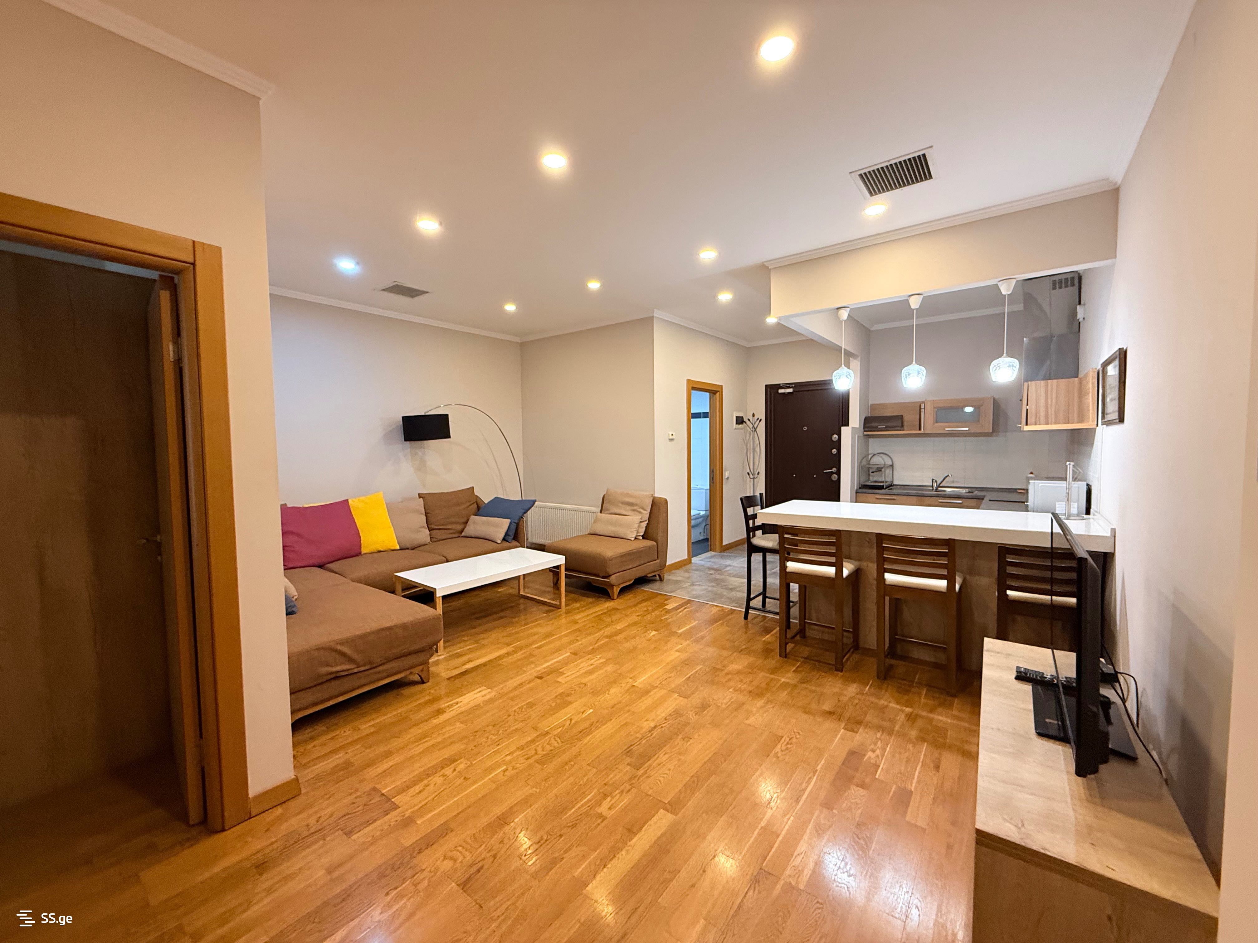 Несмотря на центральное расположение, квартира в самом центре очень тихая. Из окон открывается вид на двор здания, а также из окон открывается прекрасный вид на президентский дворец и церковь Кашвети. Здание имеет собственный генератор, поэтому при отключении электроэнергии вы не застрянете в лифте. Мебель и техника остаются новому владельцу. В данный момент квартира успешно сдается на Airbnb.