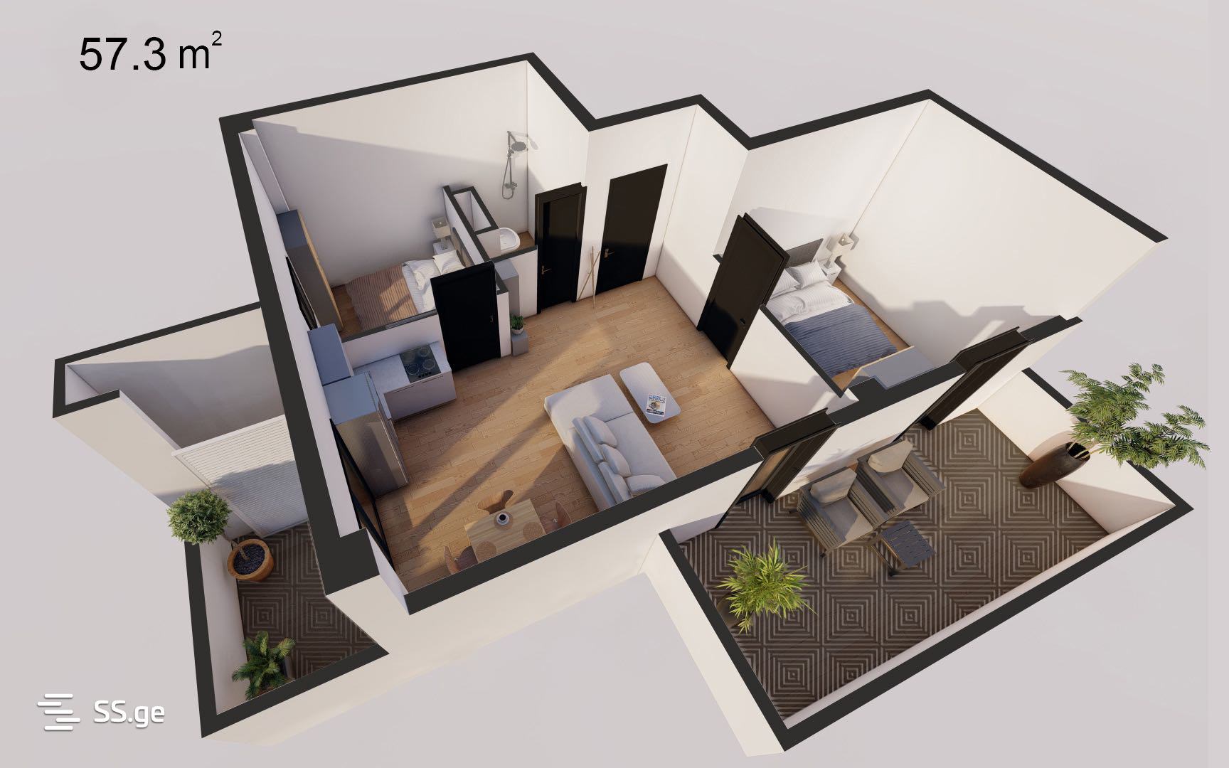 57.3 m²Комната