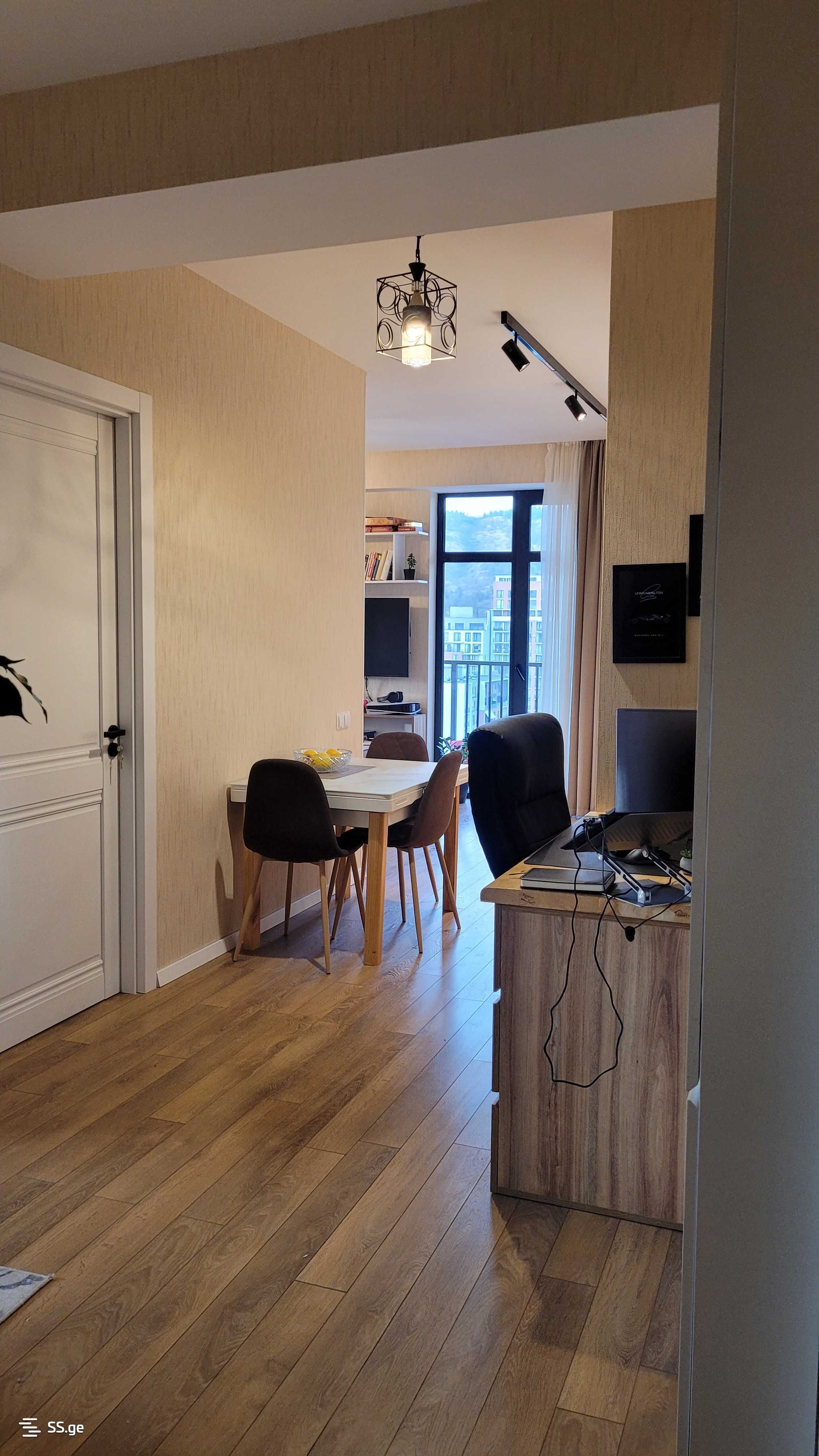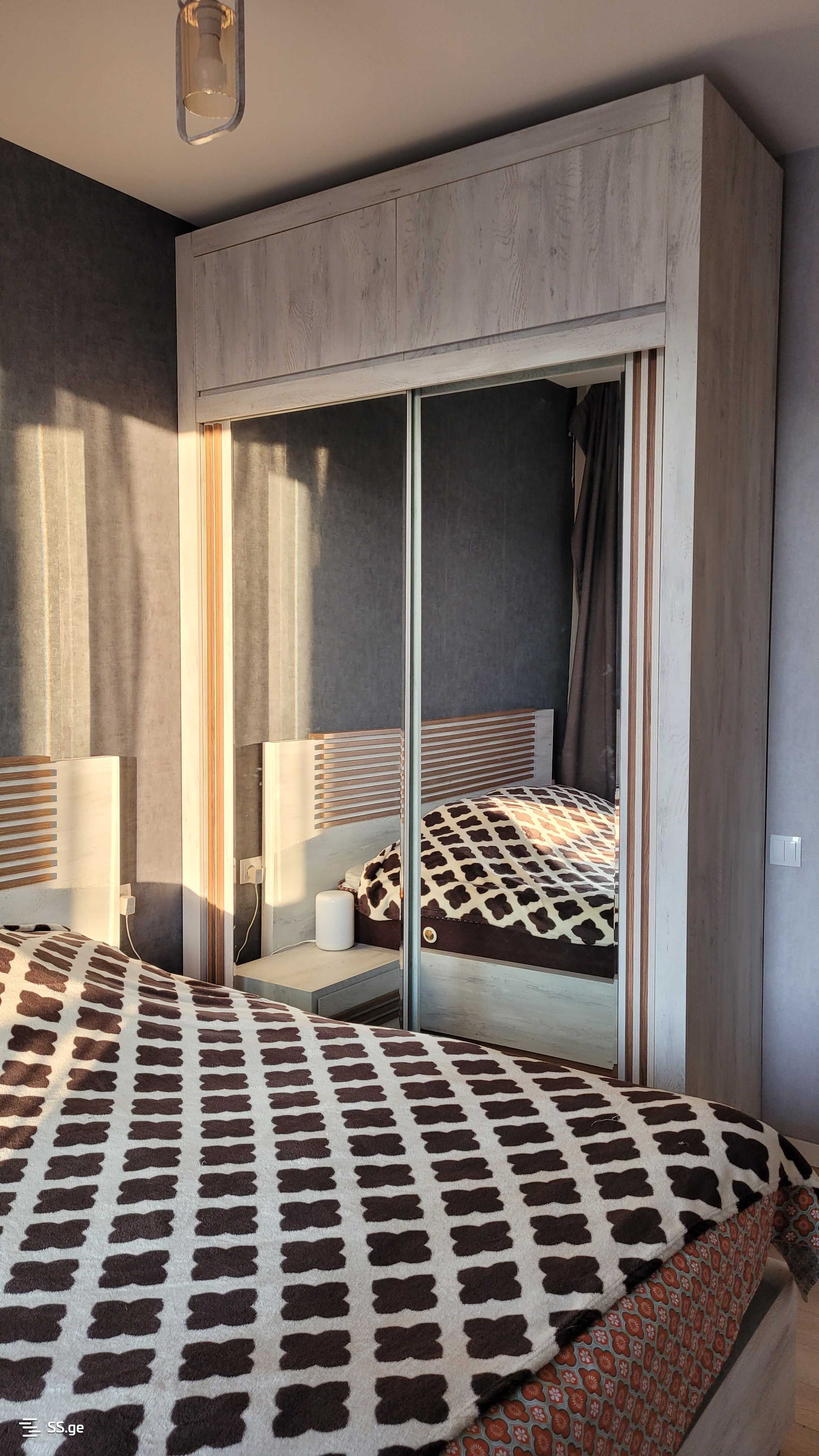 Продается полностью отремонтированная светлая угловая квартира с мебелью и техникой на пересечении улиц Политковская и Миндели (возле школы Ньютона), на 19-м этаже 22-этажного здания в блоке "Арчи Сабуртало". Общая площадь 78 кв. метров, две спальни и гостиная-студия. У квартиры два балкона с хорошими видами.