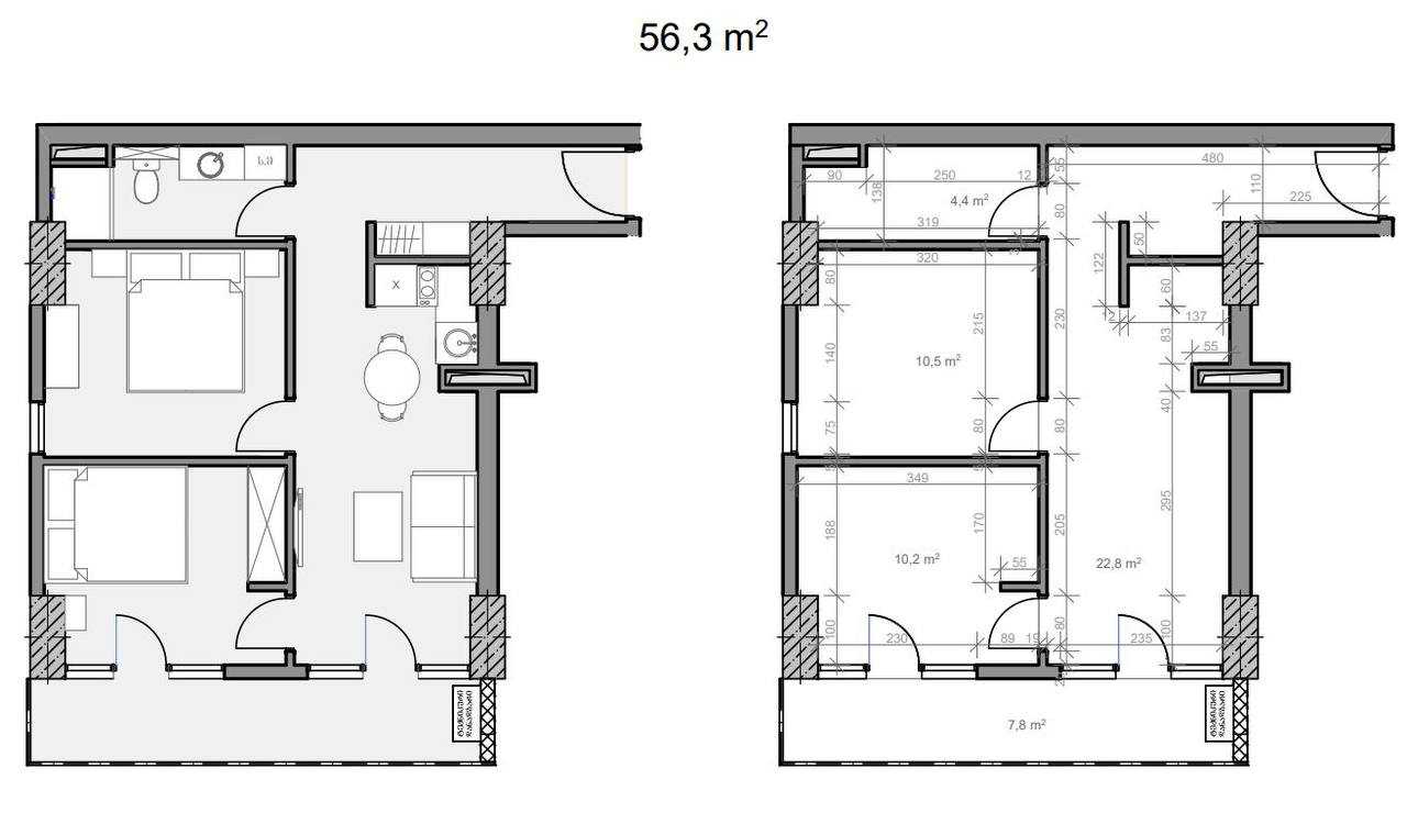 56.3 m²Комната