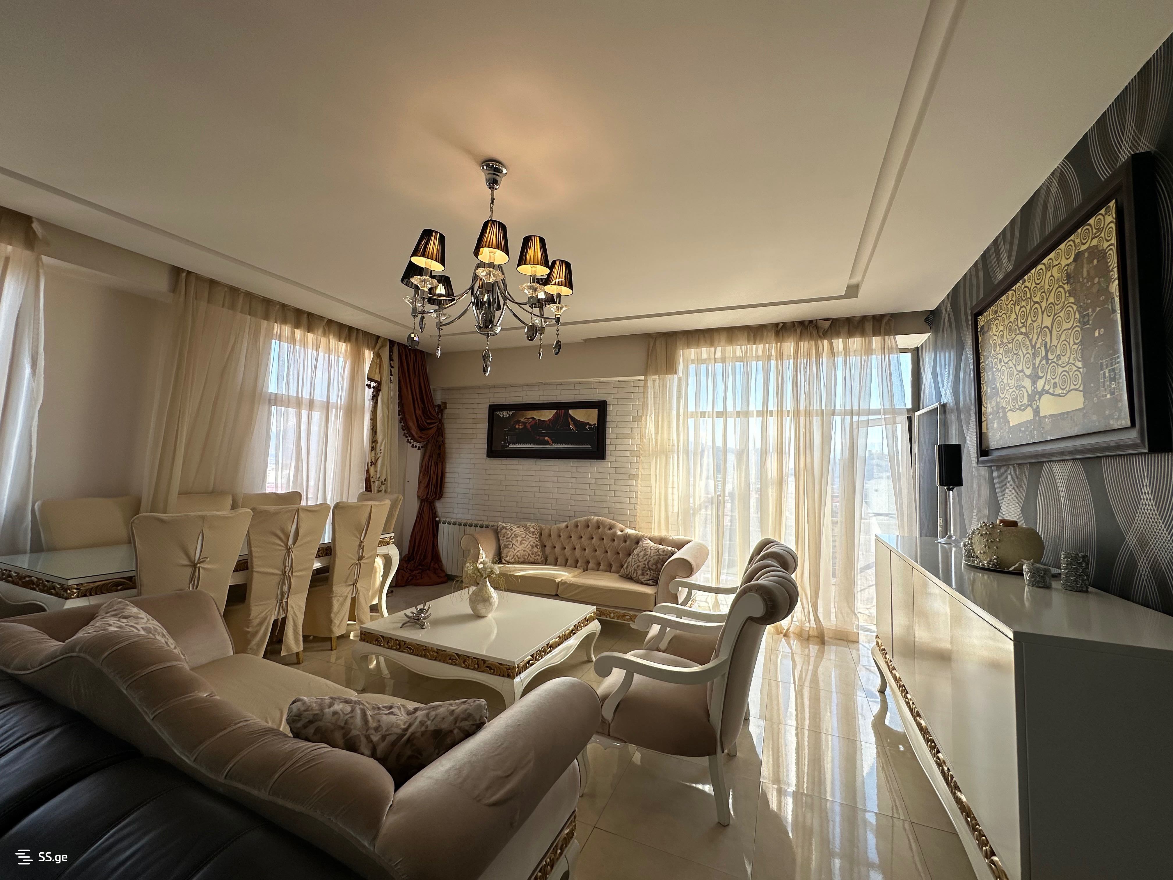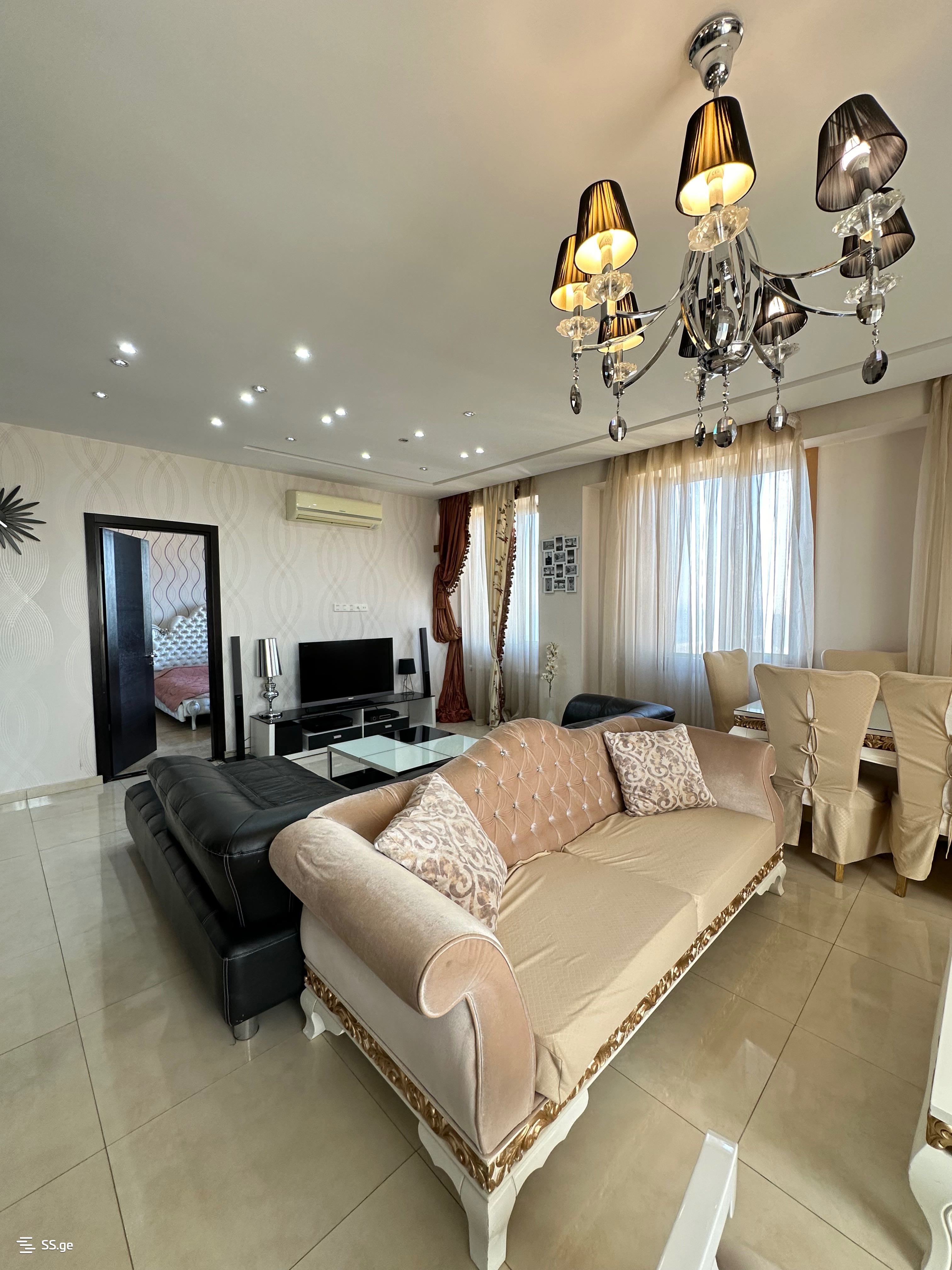 Продается великолепная квартира на Шерифе Химшиашвили, 130 квадратных метров, с двумя светлыми спальнями, двумя ванными комнатами и окружающим балконом с потрясающим видом. Все, что вы видите на фотографии, остается в квартире. Центральное отопление. Квартира продается срочно и имеет цену каркаса.
