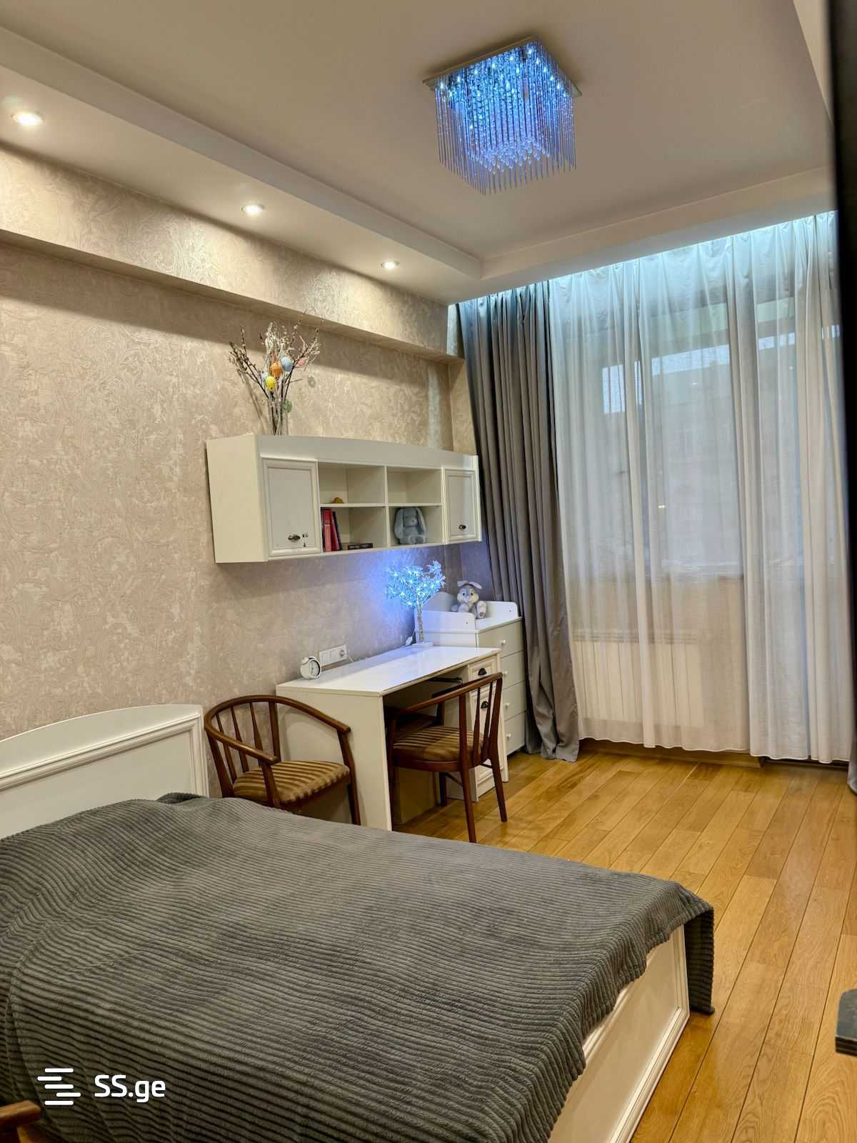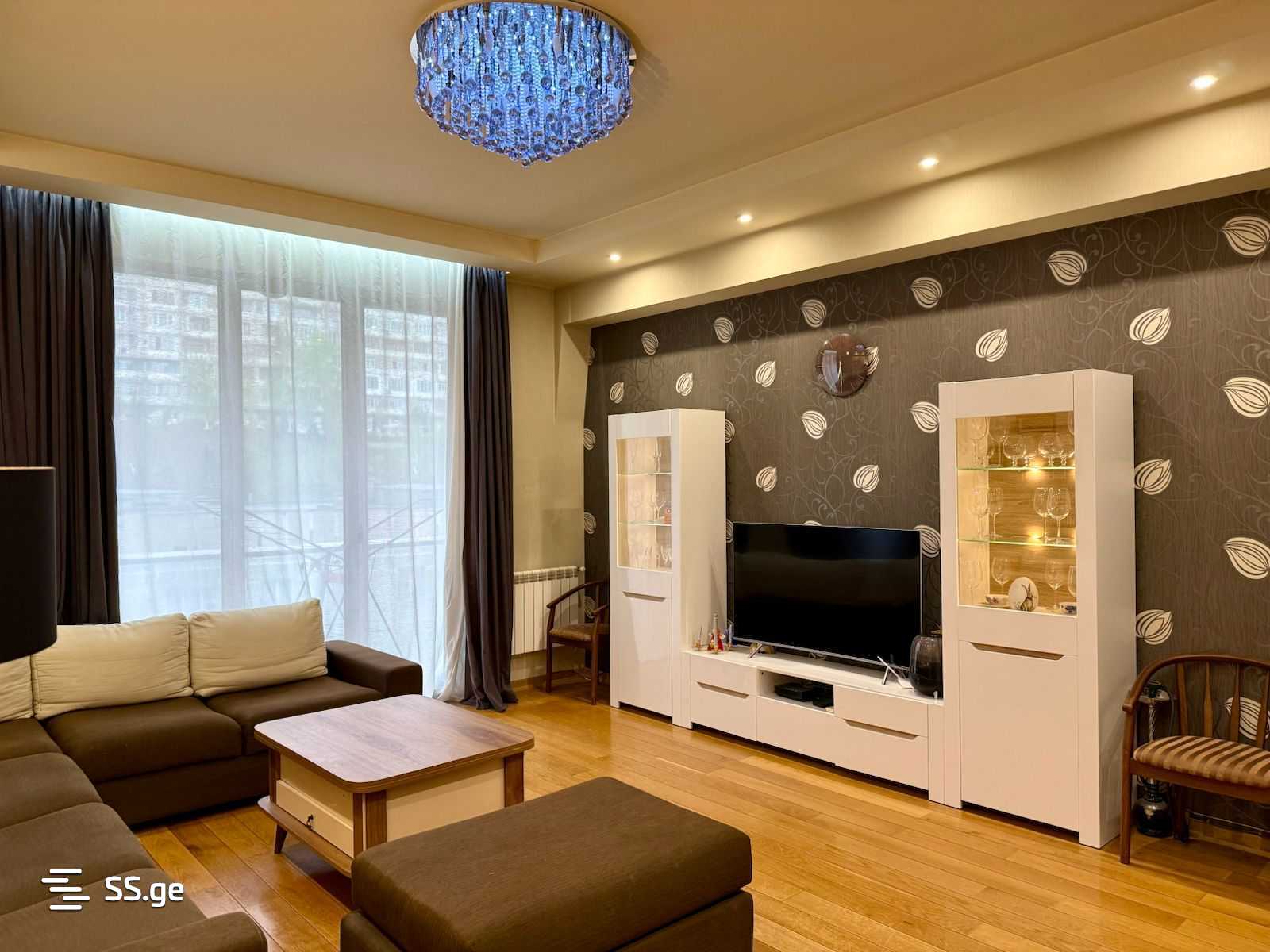 Продается 3-комнатная квартира в Сабуртало - ул. Бахтриони, 11б. Квартира расположена в Axis Palace 1, в крыле Бахтриони. Квартира в идеальном состоянии и продается с мебелью и техникой. В здании работает консьерж-сервис 24 часа, а вход хорошо оформлен.