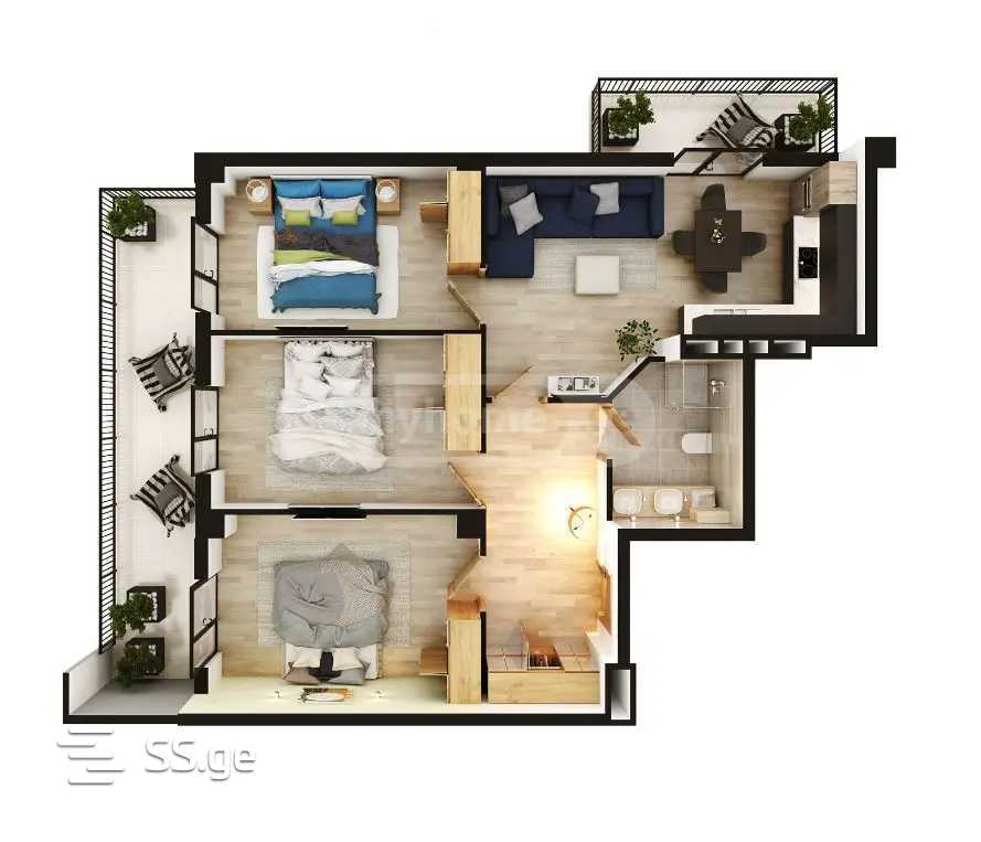 Квартира продается в строящемся проекте на проспекте Парнаваз Мепе в Дидгори. Здание будет сдано в 2026 году.