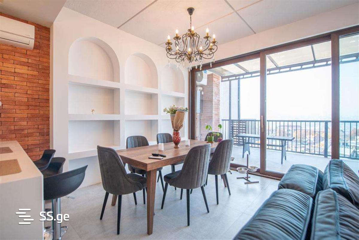 Срочно продам красивый коттедж в Чугурети ул. Аспиндзе. 4-комнатная квартира 2 спальни и кабинет, 2 санузла, в одной ванной комнате установлена ванна, площадь квартиры 145 кв.м., есть своя терраса 123 кв.м. Ремонт выполнен современным дизайнером, где использован качественный и современный дизайн, красивая терраса с видом на Тбилиси, квартира полностью меблирована мебелью и техникой. На 5(5) этаже есть лифт, дом новый, шум не побеспокоит, квартира светлая и уютная, есть собственный гараж.