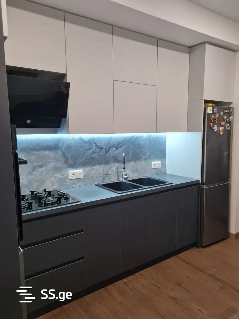 Продается новая отремонтированная солнечная квартира с 3 спальнями на улице А. Варазия, недалеко от озера Лиси, в здании Арки. Дом имеет площадь 138 кв/м с большой верандой и витражами, оборудован всем необходимым техникой и мебелью.