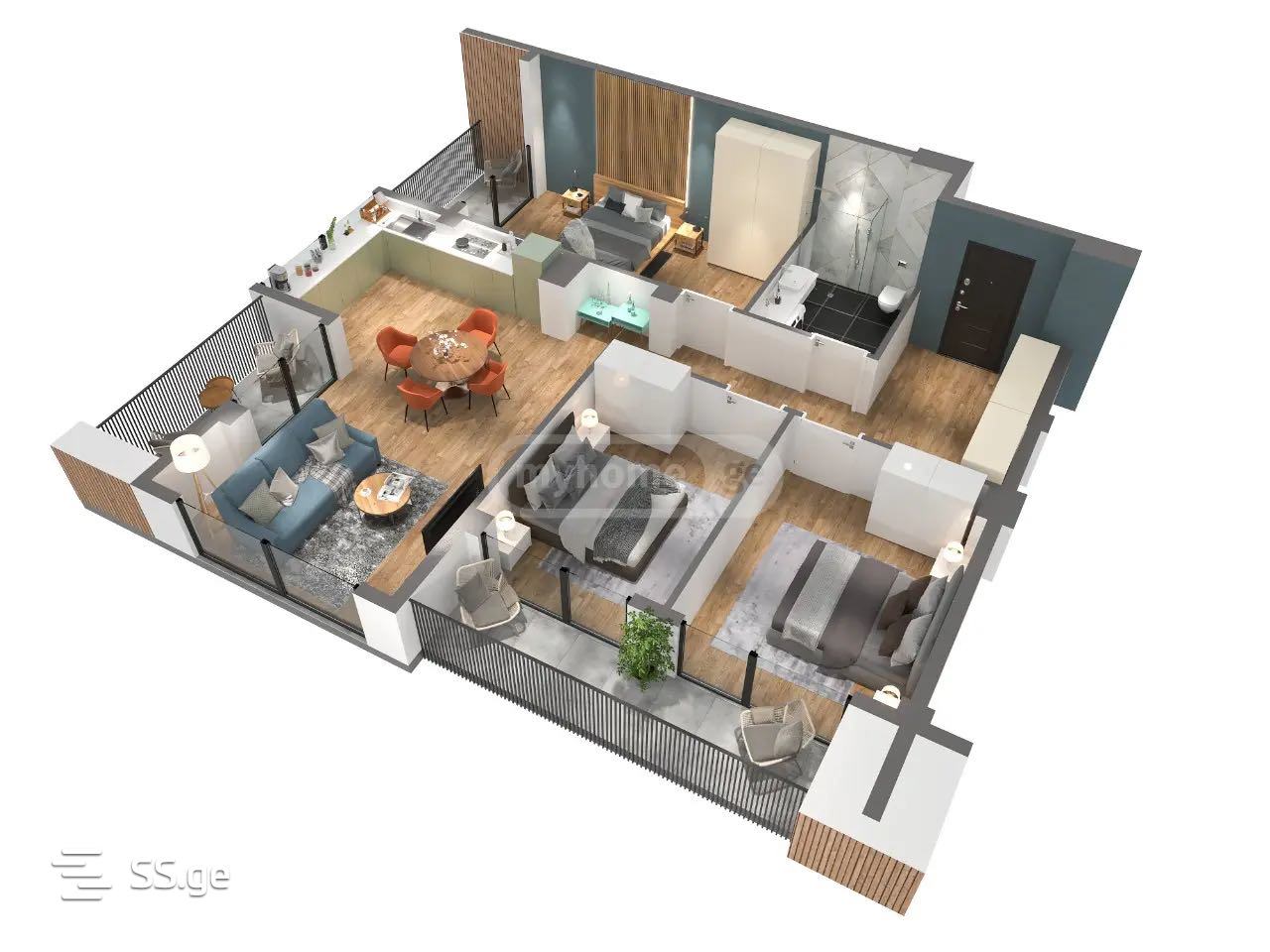 Продается на третьем этаже D блока, уютная четырехкомнатная (три спальни и студия) квартира площадью 109.4 кв.м. в состоянии белого каркаса, расположенная в закрытом жилом комплексе Modern City Lisi, рядом с Миллениумской школой на Лиси. Комплекс состоит из четырех единиц пятиэтажного жилого блока, в центре предусмотрен зеленый двор, под всеми корпусами есть парковка. До набережной озера Лиси 500 метров. Строительство всех блоков комплекса в основном завершено, окончание запланировано на конец июня. Каждая комната имеет свой балкон (общая площадь балконов 15 кв.м.), квартира имеет большую ванную и расположена очень близко к лифту и лестнице. Modern City - Лиси, новый, премиум-класс, здоровый жилой район с соответствующей современной инфраструктурой: системой противопожарной безопасности, генератором для лифтов и аварийного освещения.