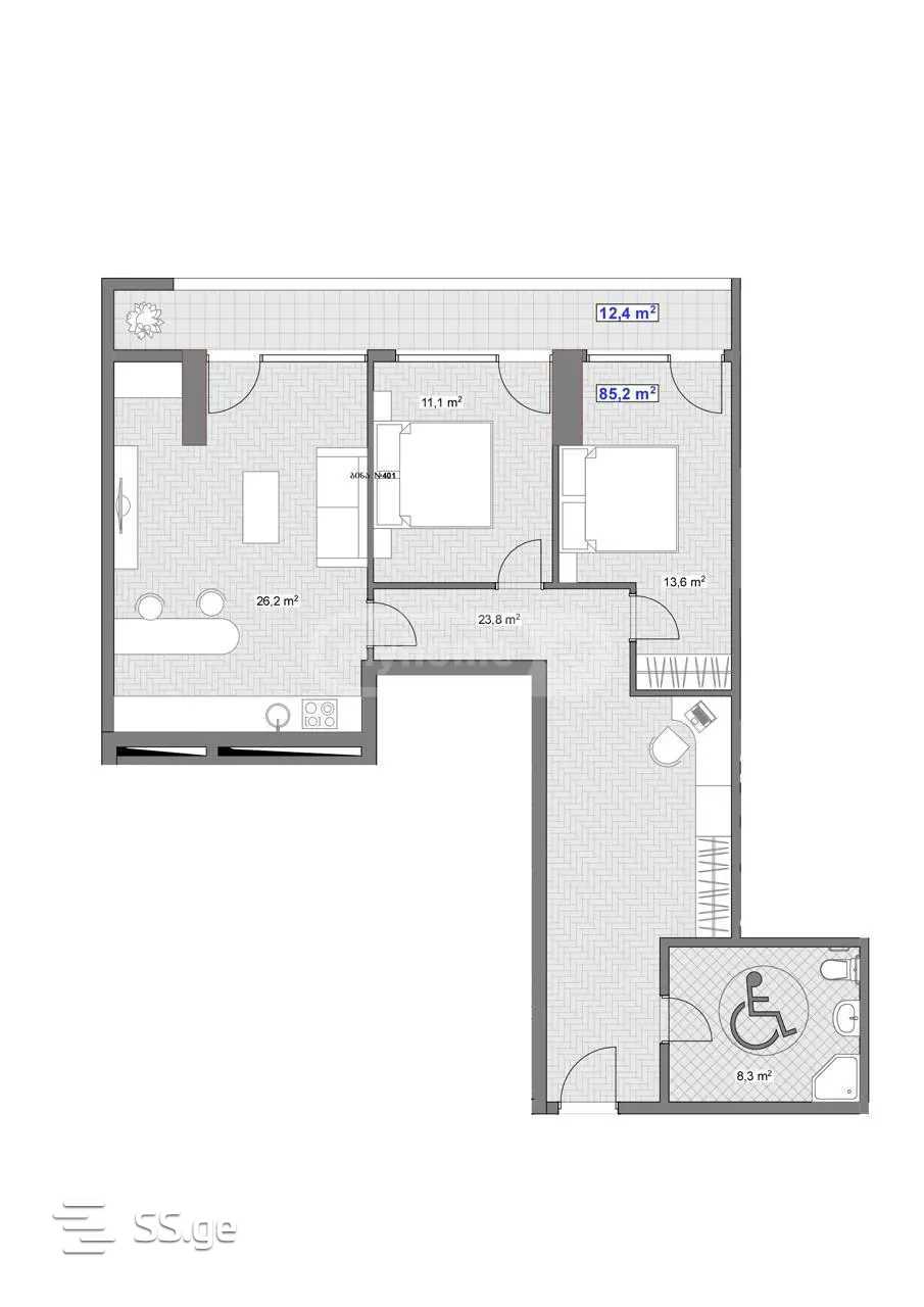 96.6 m²Комната