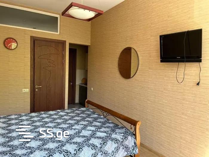 Apartment for sale with individual entrance at Aleksidze 7. The space is divided into 2bedroom and 1bedroom spaces. Each with its own bathroom and kitchen area. The apartment has builtin entrance and kitchen furniture. The apartment has central heating and two air conditioners. The space can also be used as an office or rented out on Airbnb.