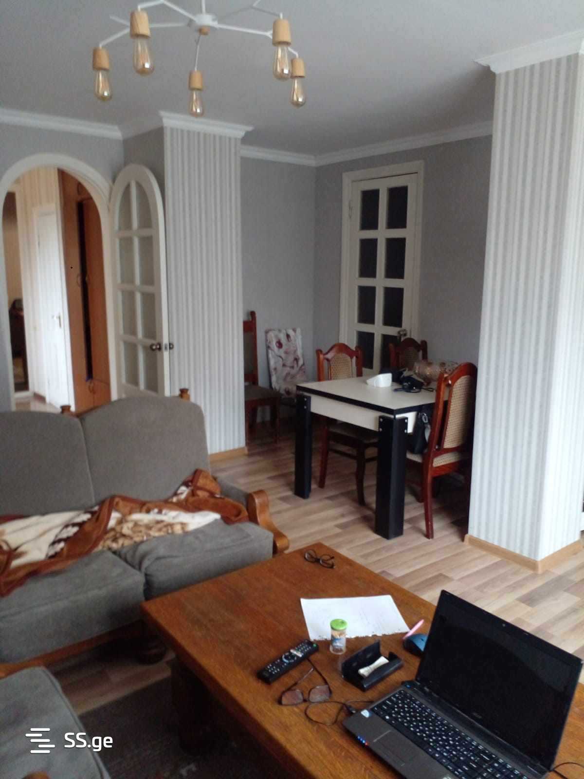 Полная площадь квартиры составляет 117 кв.м. В квартире есть центральное отопление и новая проводка. Дверное окно выполнено из металлопластика, наружные окна имеют защитные железные жалюзи. Квартира состоит из трех спален, одной гостиной и двух влажных помещений (ванная комната с туалетом и один отдельный туалет). Есть одна кухня и подвал. Остается кухонная мебель, встраиваемые шкафы в коридоре и кондиционер. В квартире сделан старый ремонт.
