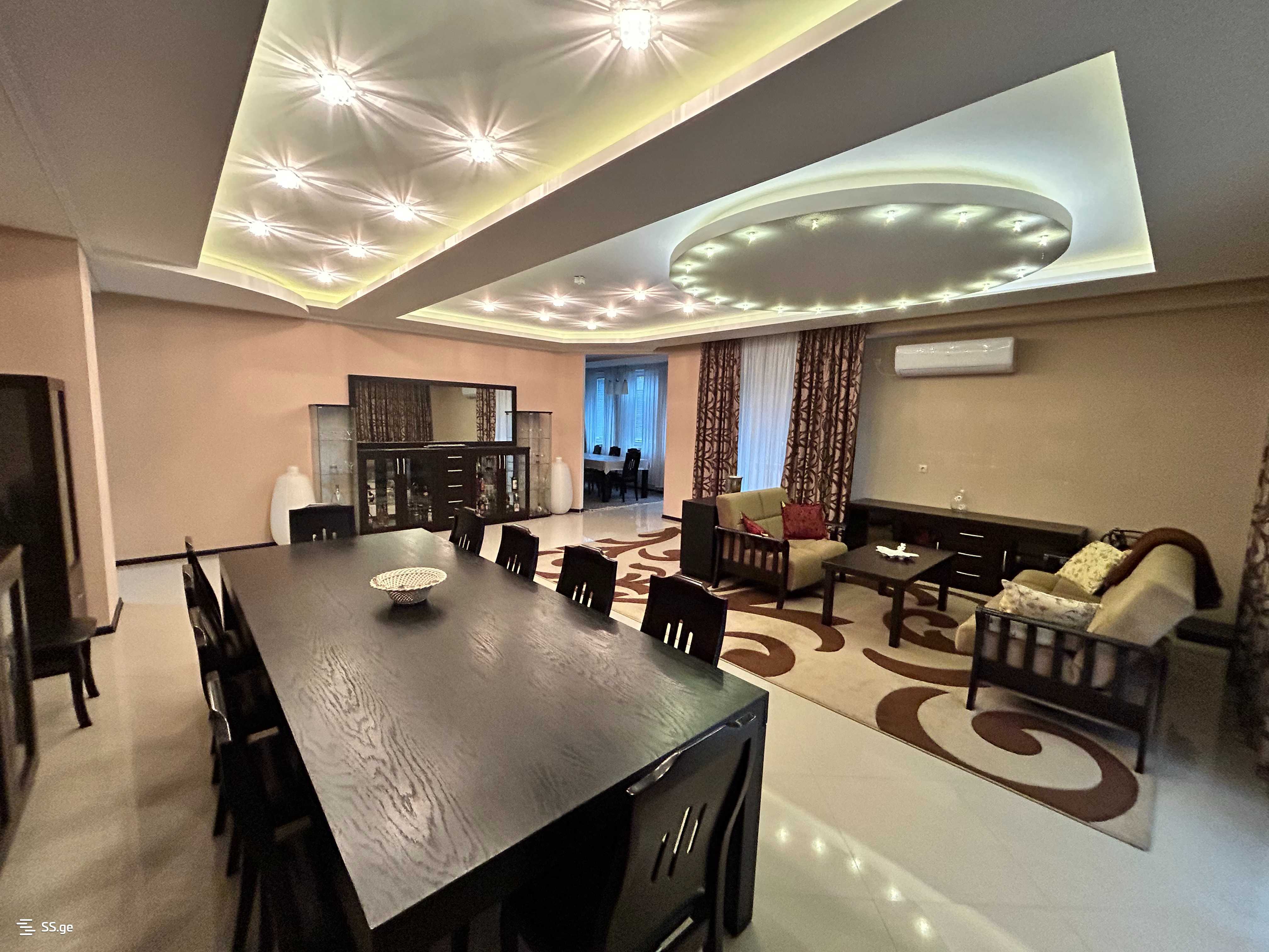 Продается 5-комнатная квартира рядом со станцией метро Важа-Пшавела, на улице Марижани. Общая площадь квартиры составляет 247 кв. м и включает в себя гостиную площадью 55 кв. м, изолированную и светлую кухню, 1 кабинет, 3 спальни (каждая с собственной ванной комнатой), всего 4 ванные комнаты, 3 кладовки и дополнительные шкафы в коридоре.