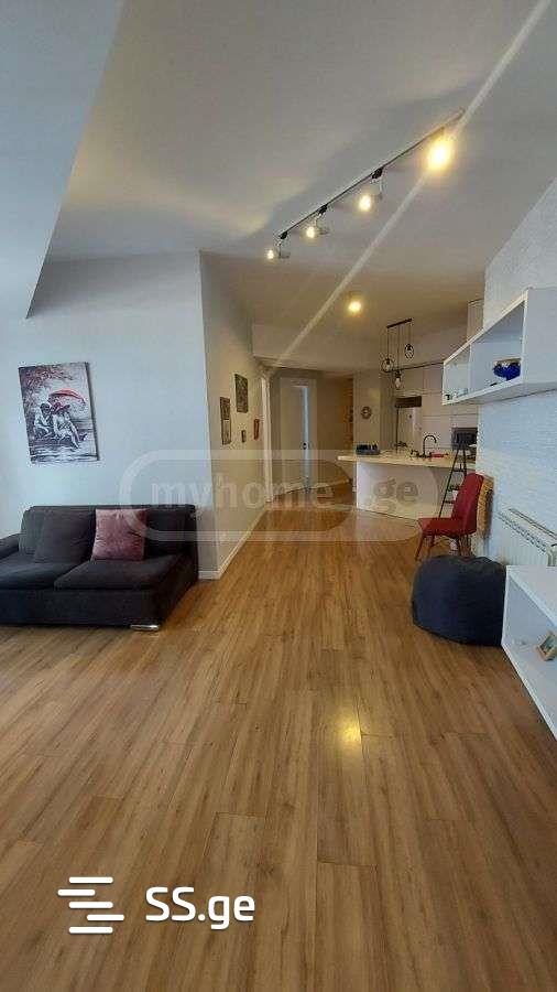 103 кв.м в аренду. 3-х комнатная полностью отремонтированная квартира с мебелью и техникой в Ваке, на проспекте Чавчавадзе, в новостройке. Район тихий и спокойный. В доме 2 лифта, подъезд чистый и аккуратный. Описание: 12 этаж 20-ти этажного дома; Большая гостиная со встроенной кухней-студией, отдельный остров с санузлом и плитой; 2 спальни; изолированная гардеробная; Большой угол с защищенным балконом; Квартиру даже не нужно трогать.