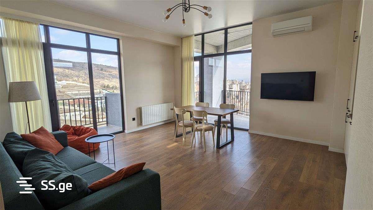 Квартира на Миндели 7б (Сабуртало, Метро ГУ). Квартира в новом жилом комплексе Mindeli Diamond, 2 спальни, 102 кв.м. метров, прекрасный панорамный вид на город, 2 террасы, одна на город, другая с видом на горы, большая гардеробная, новый современный ремонт, качественная бытовая техника, абсолютно все необходимое есть в квартире. Отличный район, в шаговой доступности метро, фитнес клуб, бассейн, 2 школы, детский сад, множество магазинов, кафе, аптека и т.д. Вторая спальня в настоящее время без мебели и будет оборудована за счет собственника для нужд новых жильцов.
