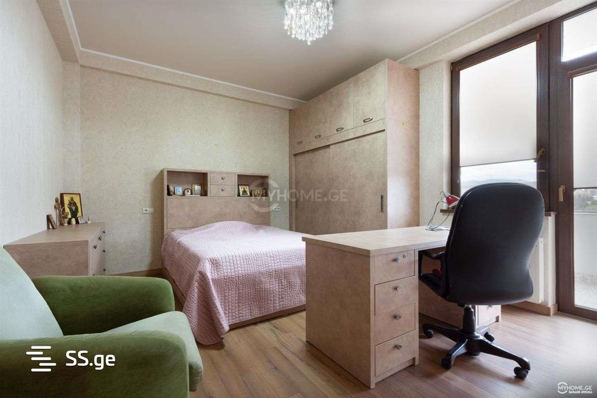 Квартира идеальна в престижном районе Тбилиси, Дигоми 7. В доме 5 этажей, квартира находится на четвертом этаже. Есть лифт и собственный закрытый гараж. Рядом с домом - школьный коралл. Рядом с домом находится супермаркет Никора и тбилисский ТЦ Carrefour. В квартире новый ремонт, вся мебель столовая, на кухне стулья, гардеробы, газовая плита, посудомойка, холодильник. В квартире есть стиральная машина, кладовая, диваны, стулья. В спальнях полный комплект кроватей, стола, гардеробы и комодов. При предоплате за 2 месяца