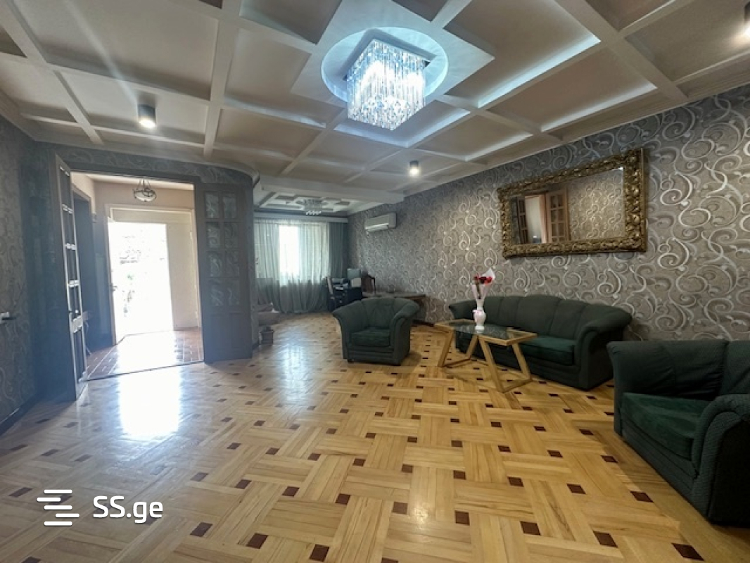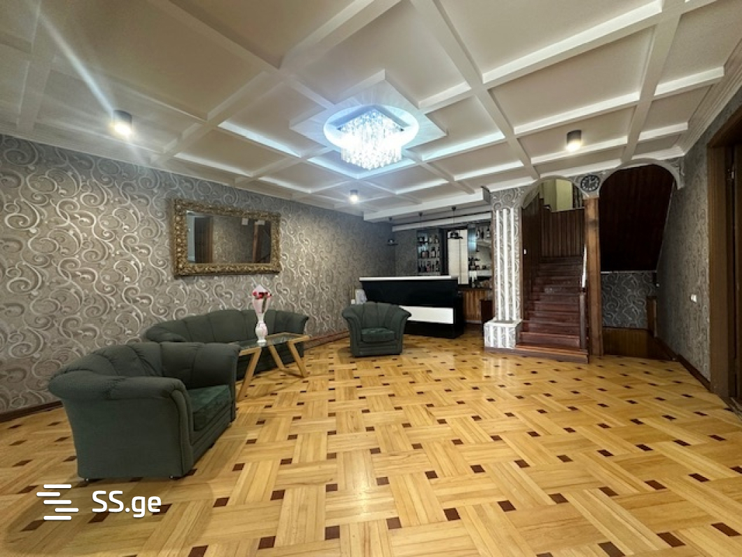 (Авто перевод!) Продается 3-х этажный капитальный дом на улице Гардения Шварднадзе, Тбилисская набережная, 6 главных спален, +2 санузла, котельная, позволяющая подавать горячую воду в 6 санузлов одновременно, 2 отопительных котла, изолированная кухня и большая столовая цокольный этаж (60 кв/м), во дворе сарай и место для 3-х машин, гараж, 2 камина, дом спроектирован как гостиница, а также может использоваться как жилое помещение. Дом продается полностью оборудованным, с мебелью, техникой и всем необходимым для функционеров.