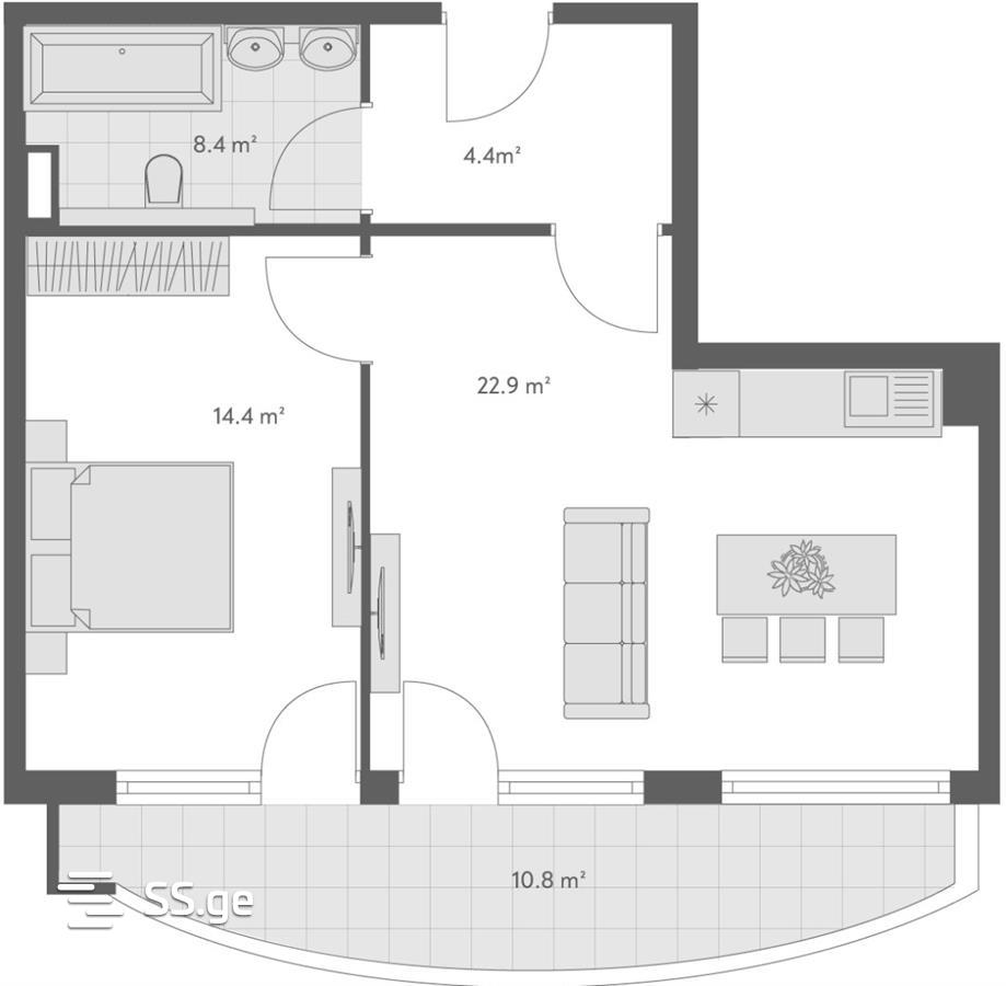 59.9 m²Комната