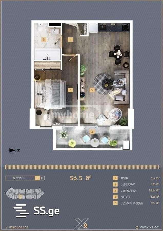 56.50 m²Комната