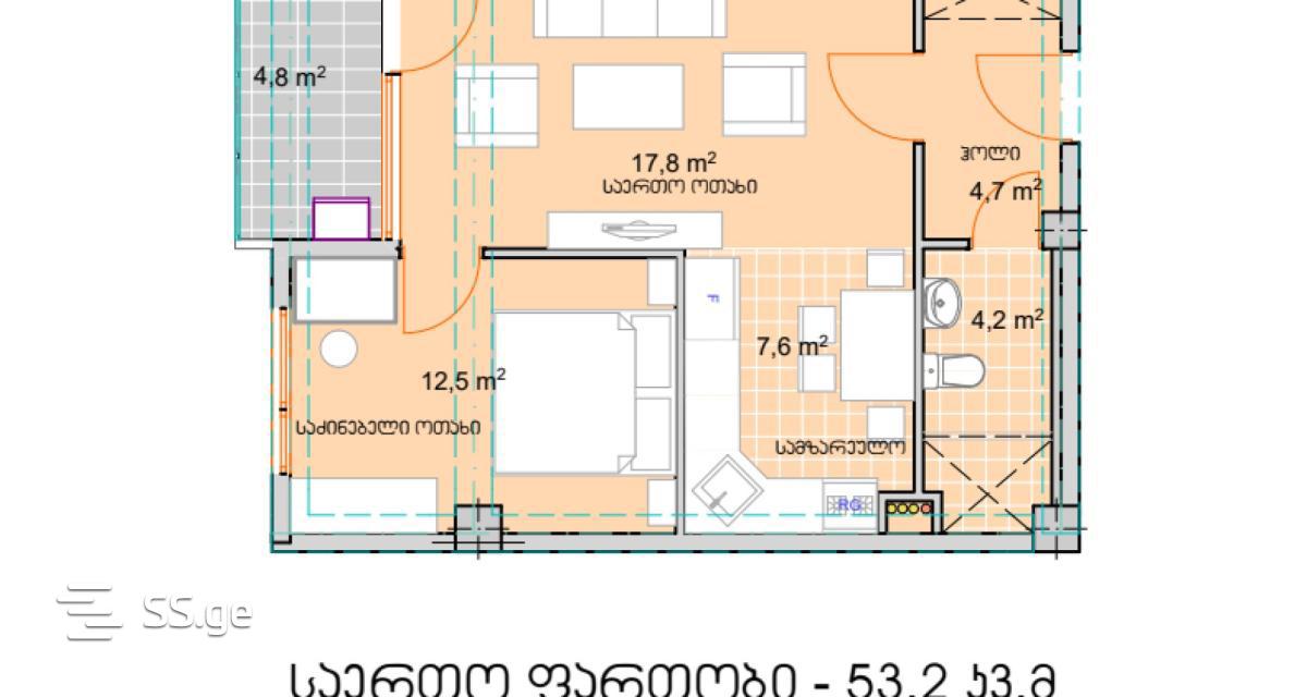 53.1 m²Комната
