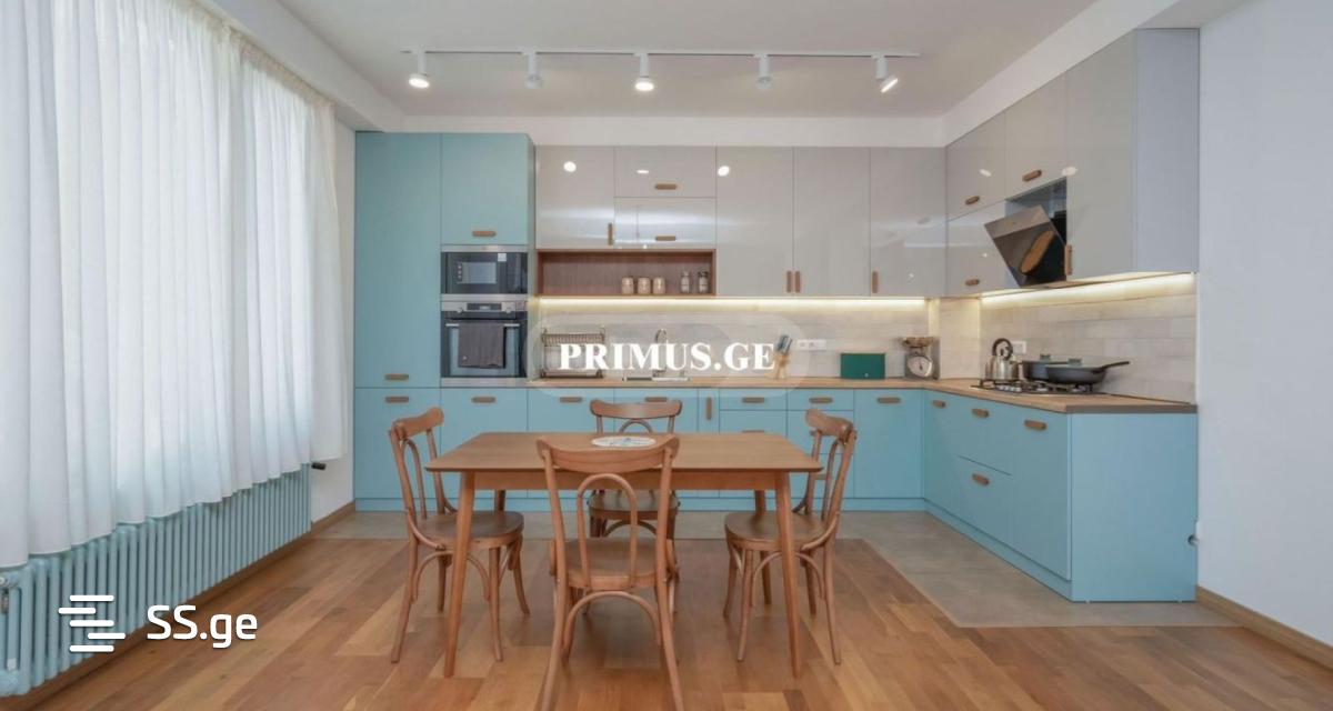 ბინა მდებარეობს ქალაქის ცენტრში, ეკოლოგიურად სუფთა ადგილას. კუთხის, მზიანი ბინა ლამაზი ხედით. არის სრულად გარემონტებული; დამატებით მოყვება შემდები ბენეფიტები:1. მუხის პარკეტი 2. AEG სამზარეულოს ტექნიკა 3. Kermi რადიატორები 4. Vaillant გათბობის ქვაბი 5. ჰანსგროჰეს და დურავიტის ბდენდის სააბაზანოს აქსესუარები 7. სამზარეულო დამზადებულია ავსტრიული ლამინატით 8. მისაღების და სააბაზანოს ავეჯი დამზადებულია წაბლის ხისგან 9. ავსტრიული განათება 10. იტალიური კარის საკეტები 11.