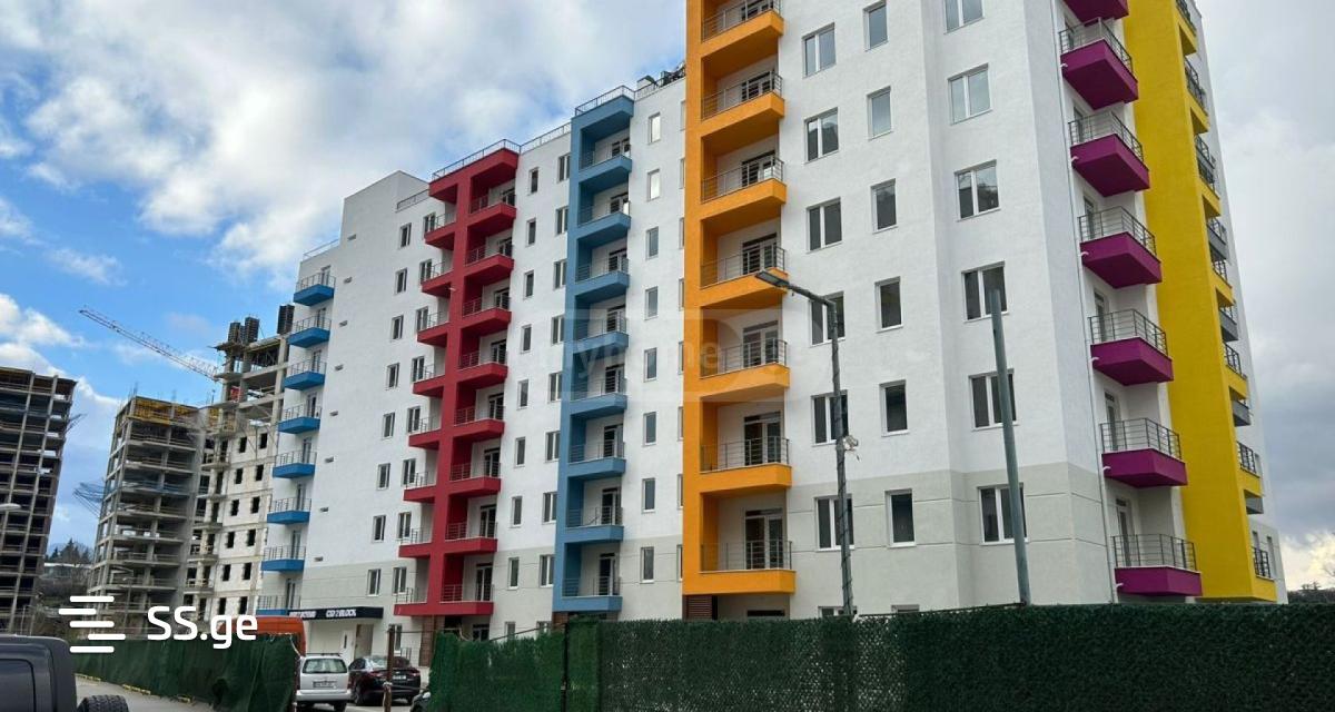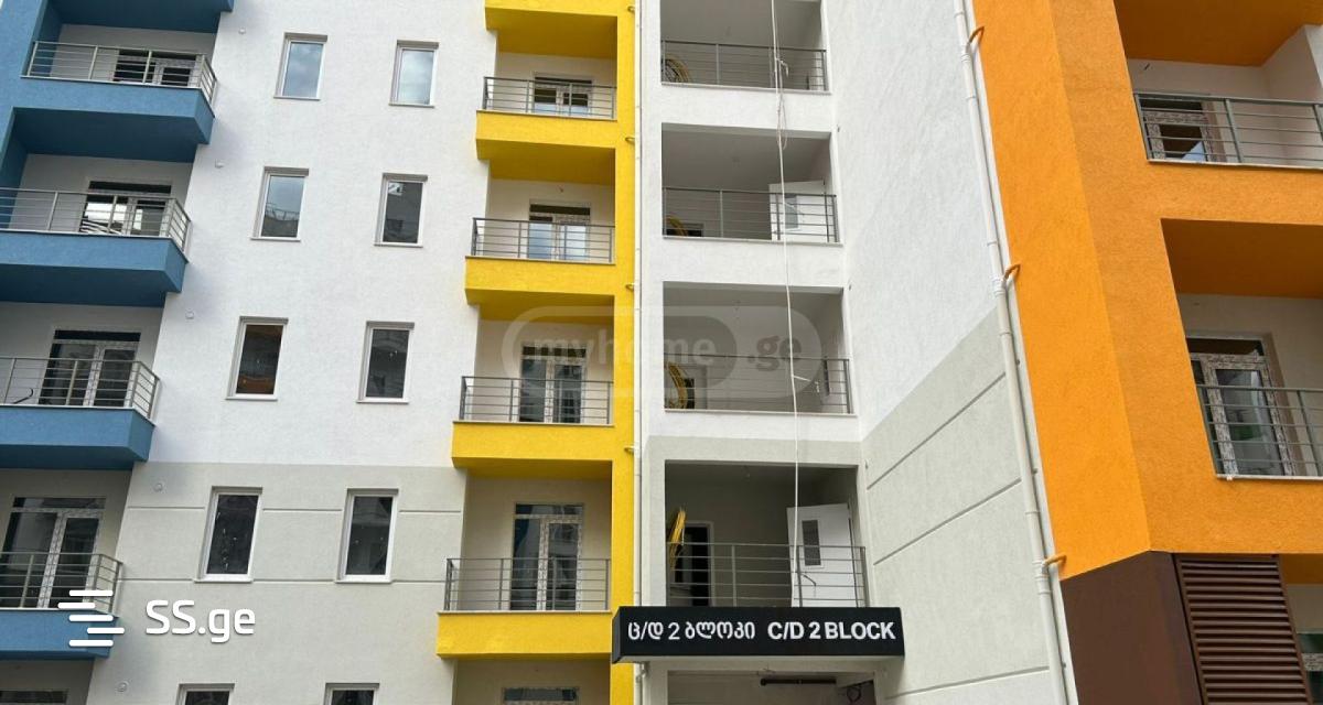 მწვანე ალმასის საცხოვრებელი კომპლექსში ვყიდი ბინას, შავი კარკასი. პირველი სართული, ხედები აუზზე და ეზოს მხარეს