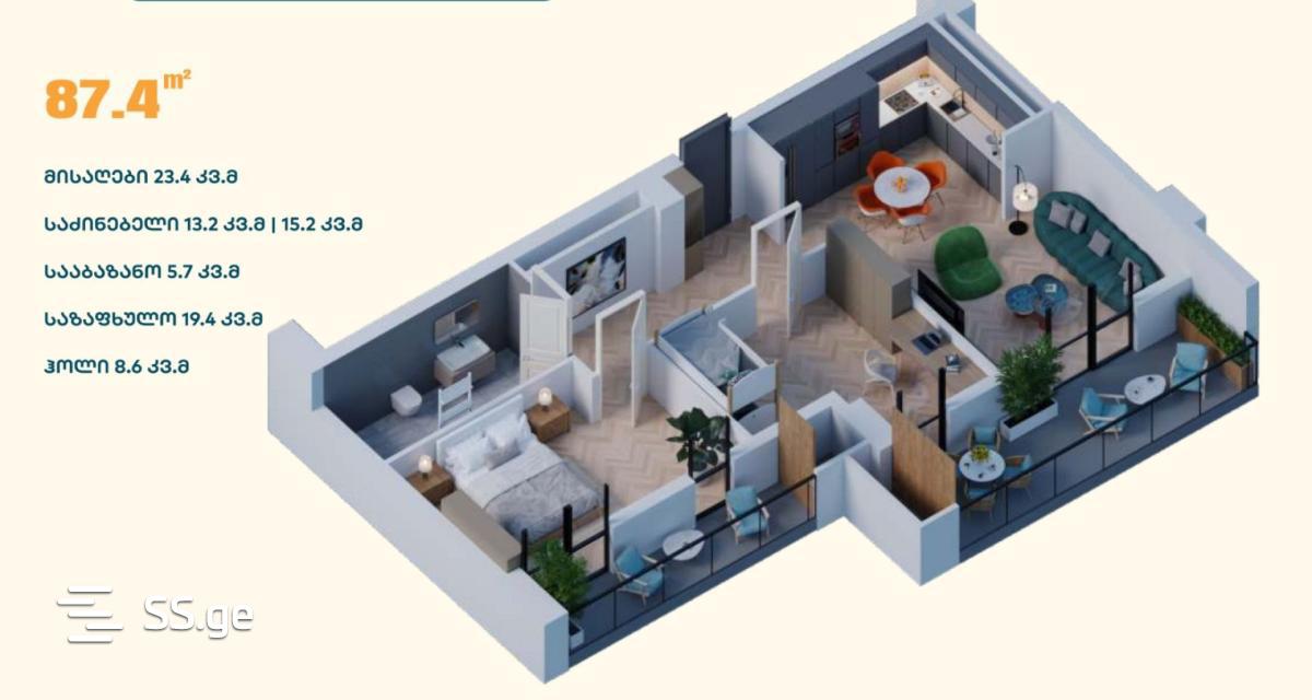 87.4 m²Комната