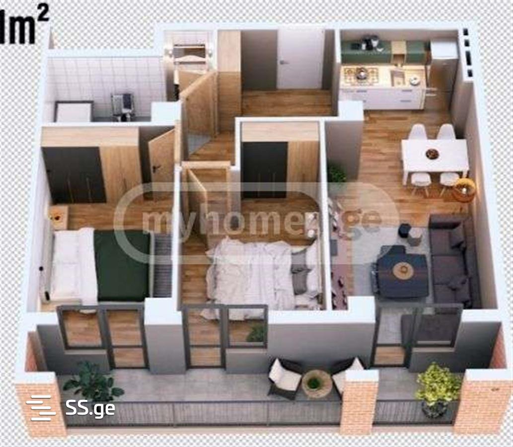 Продается в Киндзмараули, N5, трехкомнатный зеленый дом в строящемся доме.