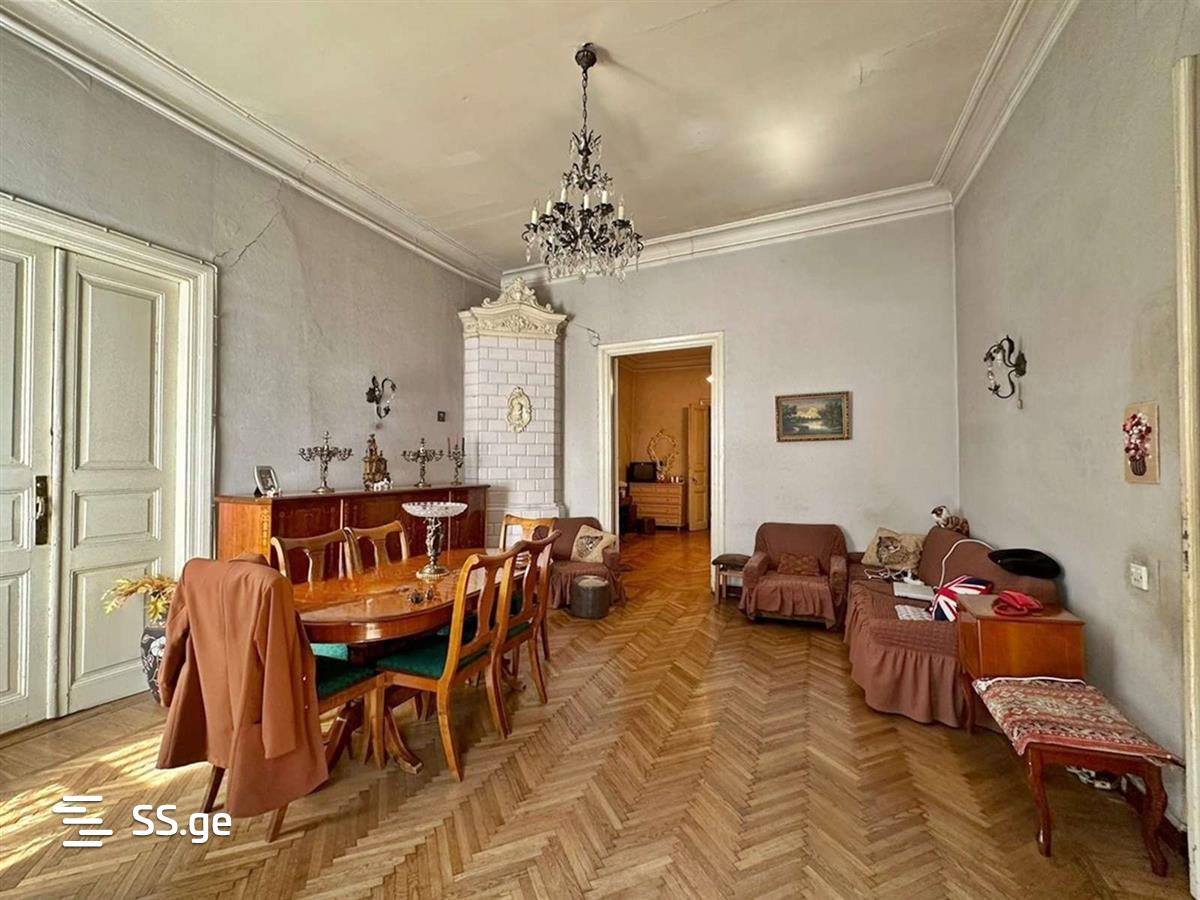 Продается квартира в Чугурети, в историческом доме. В каждой комнате есть старинный камин. В нем 4 комнаты и лоджия (стеклянная полоса), которая ранее функционировала как веранда и может быть восстановлена до прежнего вида. имеет 157 кв.м. чердак тоже!