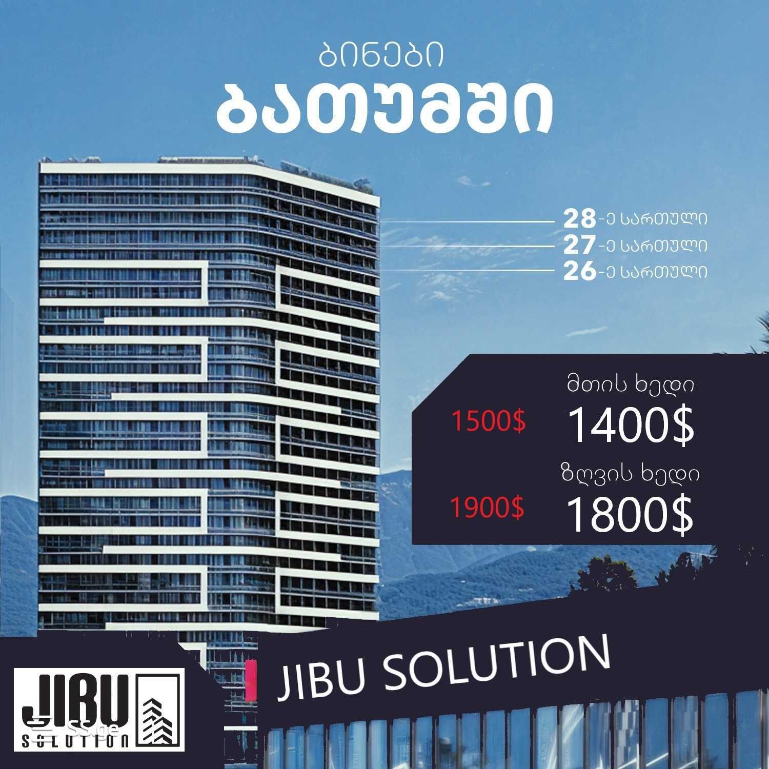 Станьте частью современной жизни Батуми с решением Jibu! Предлагаем апартаменты премиум-класса в Батуми, комплекс Bagrationi Residence, всего в 8 минутах от моря. Остались квартиры на 26, 27 и 28 этажах! Цены: Апартаменты с видом на море - 1 кв.м Цена: $1800 Апартаменты с видом на горы - 1 кв.м Входная дверь на балкон, пол керамогранит. Преимущества комплекса с окрашенными стенами Jotun: зона отдыха 1700 кв.м. круглосуточная охрана и видеонаблюдение услуги аренды квартир три ультрасовременных лифта Otis бесплатная парковка и зеленый двор платная подземная парковка на 70 машин детская инфраструктура вестибюль, ресепшн и консьерж-сервис Расположение: Комплекс расположен в комфортабельном и В престижном месте, недалеко от Центрального стадиона Батуми, на улице Петре Багратиони. Свяжитесь с нами сегодня и узнайте больше об остальных квартирах (от 30 до 85 квадратных метров)
