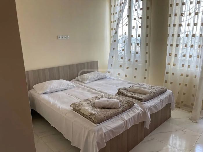 Продается новопостроенный действующий отель (со своей клиентурой), 2 трехэтажных здания в лучшей части курорта на улице Агмашенебели. 42 номера, 1510 м2. Одно-, двух- и трехместные номера со всем необходимым. Площадь двора 2250 кв.м. Кафе-бар, бассейн, отдельный бар. Сауна. Красивый двор, отдельное здание для персонала, прачечная. 150 метров до моря. Имеет два входа, собственный паркинг. $ 2200000